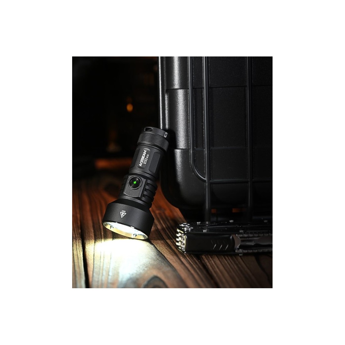 Korpus wykonano z lotniczego aluminium AL6061-T6 z twardą anodyzacją, co gwarantuje wysoką odporność na uszkodzenia mechaniczne. Latarka wytrzymuje upadki z wysokości 1,5 m i spełnia normę IP68, dzięki czemu jest odporna na pył, deszcz i zanurzenie w wodzie. To sprzęt, na którym możesz polegać w każdych warunkach pogodowych.