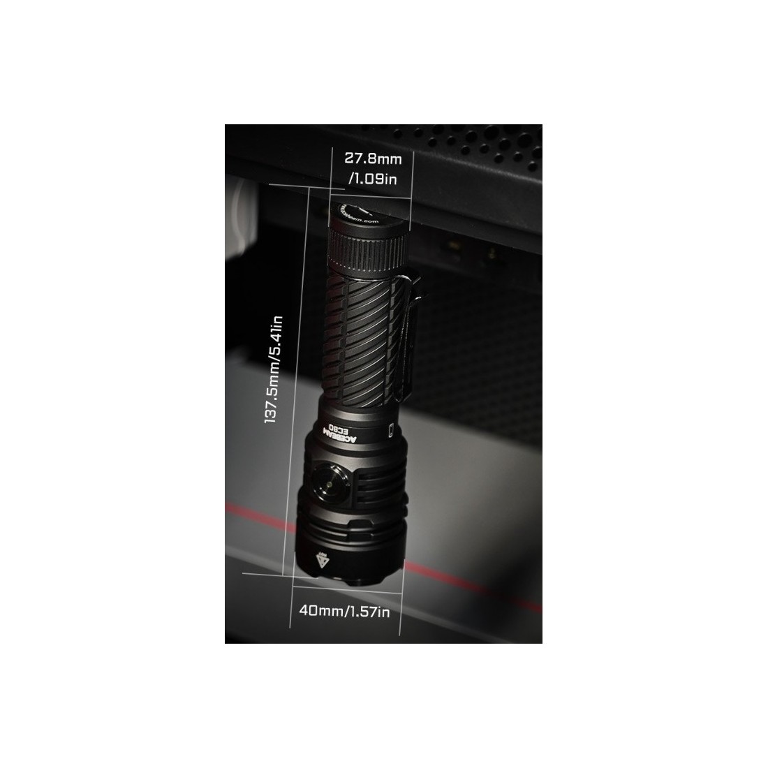Latarka Acebeam EC90 została wyposażona w magnetyczną nasadkę tylną, która umożliwia stabilne mocowanie do powierzchni metalowych. Dzięki temu można korzystać z latarki bez użycia rąk – np. podczas prac serwisowych, biwakowania czy w sytuacjach awaryjnych, gdzie potrzebne jest dodatkowe źródło światła ustawione w jednej pozycji.