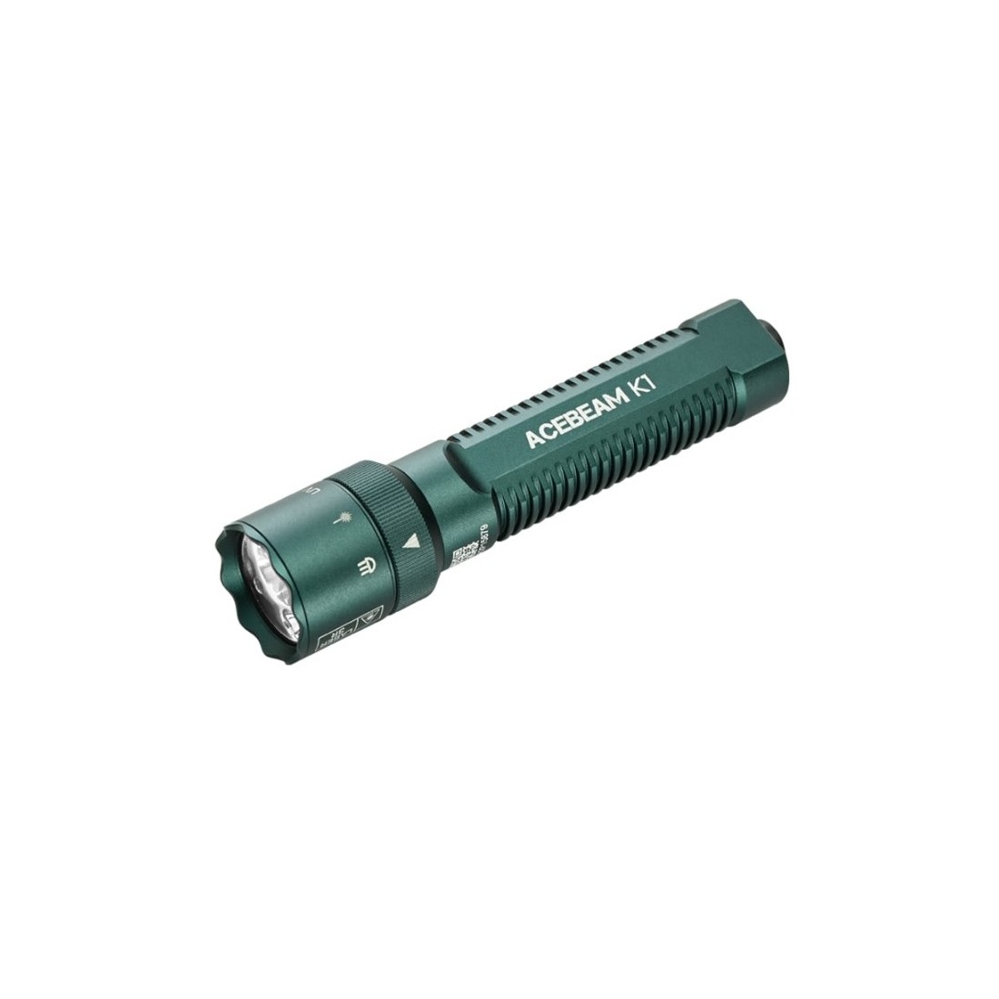 Acebeam K1 to wszechstronna latarka EDC wyposażona w trzy źródła światła: mocną diodę białą 1000 lm o zasięgu 223 m, zieloną wiązkę do precyzyjnego wskazywania oraz profesjonalne UV 365 nm (1000 mW) do wykrywania ukrytych śladów i detali. Intuicyjny magnetyczny przełącznik obrotowy, tylna obsługa jedną ręką oraz zasilanie z 14500 USB-C (z opcją użycia AA) sprawiają, że K1 idealnie sprawdza się w codziennym użytkowaniu i pracy terenowej. Wytrzymała obudowa AL6061-T6, pełna wodoodporność IP68 i kompaktowe rozmiary czynią ją niezawodnym narzędziem do EDC, serwisu, turystyki i działań technicznych.