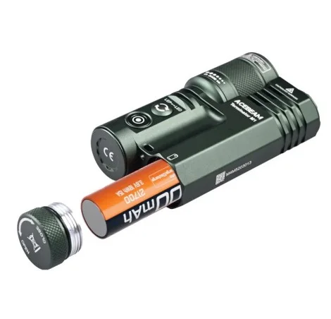 Latarka Acebeam wyposażona jest w wydajny akumulator litowo-jonowy 21700, który zapewnia dłuższy czas pracy i wysoką moc wyjściową. Jedną z kluczowych cech tego akumulatora jest możliwość ładowania przez port USB-C, co ułatwia szybkie i wygodne uzupełnianie energii w dowolnym miejscu. Dodatkowo, akumulator charakteryzuje się dużą pojemnością, co czyni go idealnym wyborem dla intensywnych zastosowań oświetleniowych, oferując niezawodność i efektywność energetyczną.