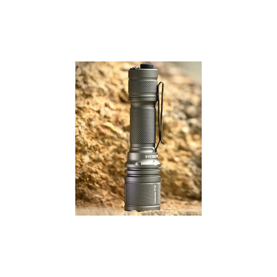 Latarka Defender P16 jest nie tylko funkcjonalna, ale również niezwykle wytrzymała. Wykonana z wysokiej jakości stopu aluminium AL6061-T6, wytrzymuje upadki z wysokości 1,5 metra i posiada klasę szczelności IP68, co oznacza pełną pyłoszczelność i wodoodporność do 2 metrów na 30 minut. Jej elegancki czarno-szary design, w połączeniu z ergonomiczną konstrukcją, zapewnia komfort i pewność użytkowania.