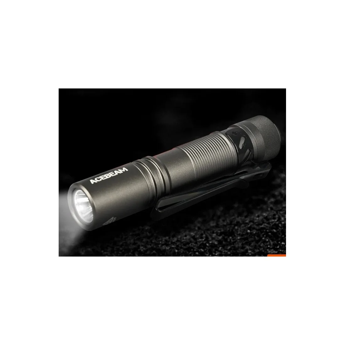 Zasilana dołączonym akumulatorem ACEBEAM 14500 920 mAh z ładowaniem USB-C, latarka jest również kompatybilna ze standardowymi bateriami AA, co umożliwia łatwe znalezienie zamienników w razie potrzeby.