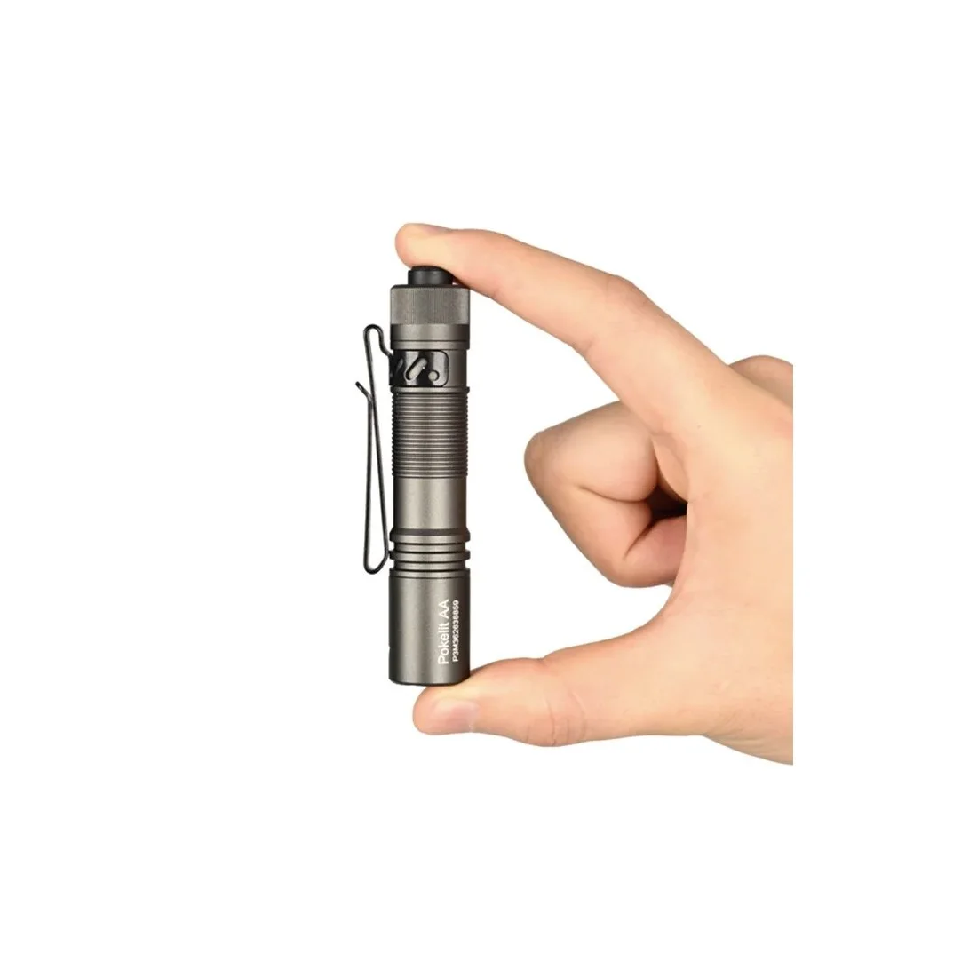 Acebeam Pokelit AA to kompaktowa latarka EDC o mocy do 1000 lumenów i zasięgu 105 m. Sprawdzi się w turystyce, pracy służb, warsztacie i na co dzień. Trzy tryby i pamięć ostatniego ustawienia ułatwiają obsługę. Stalowy klips dwukierunkowy, obudowa z aluminium AL6061 T6 oraz standard IP68 zapewniają wygodę i trwałość. Zasilanie akumulatorem 14500 USB C w zestawie lub baterią AA.