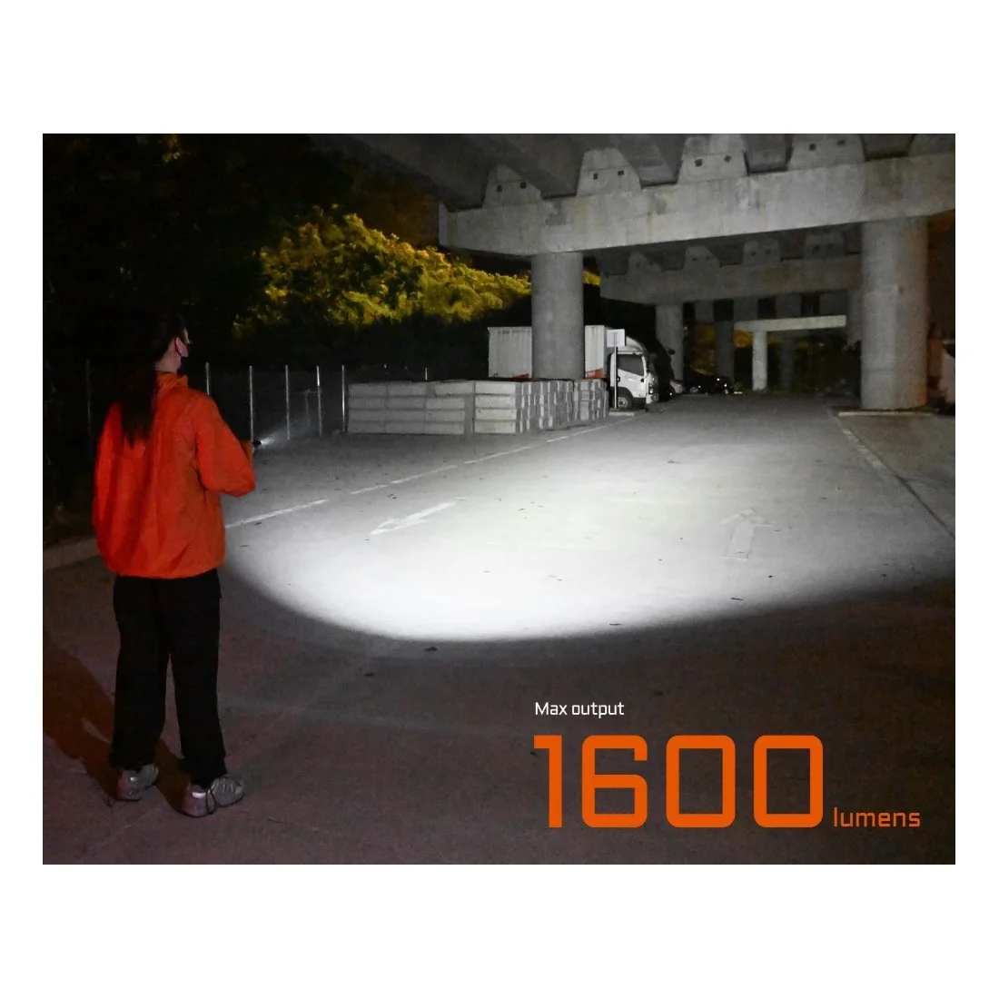 Latarka wyposażona jest w akumulator 1800mAh 3.7Vz portem USB-C, co pozwala na łatwe i szybkie ponowne naładowanie. Dodatkowo, kompatybilność z 2 bateriami AA zapewnia elastyczność w sytuacjach, gdy ładowanie nie jest możliwe, umożliwiając szybką wymianę zasilania.