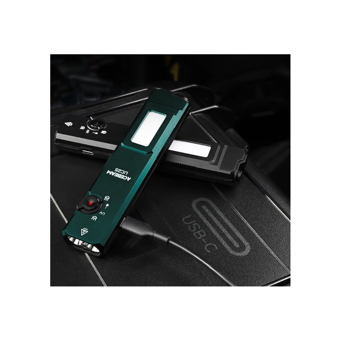 Latarka UC25 posiada wbudowany akumulator litowo-polimerowy 3000 mAh (3,7 V, 11,1 Wh), który zapewnia nawet 69 godzin pracy w najniższym trybie. Ładowanie odbywa się przez port USB-C, co eliminuje konieczność używania zewnętrznych ładowarek. Wbudowany wskaźnik poziomu baterii informuje użytkownika o stanie naładowania za pomocą diody LED przy bocznym przycisku.
