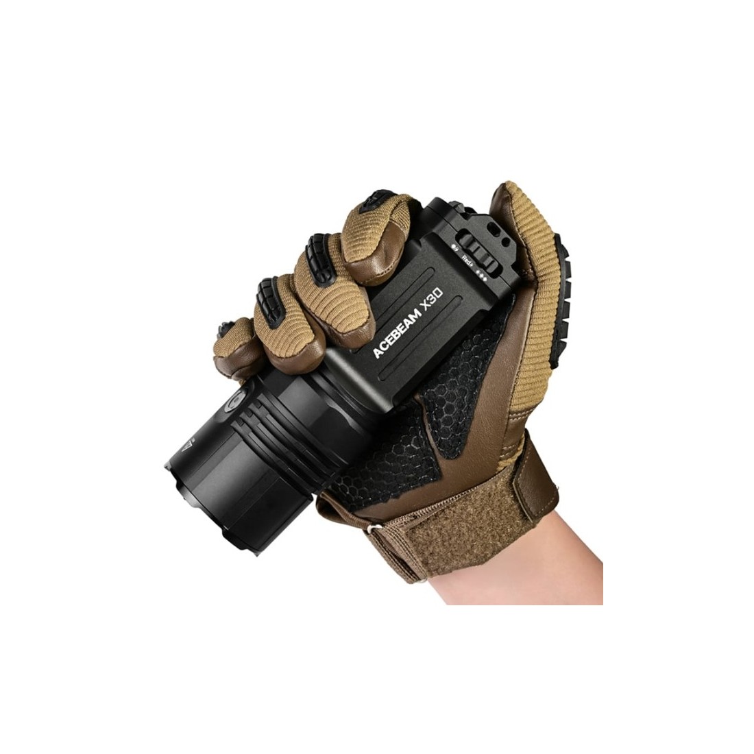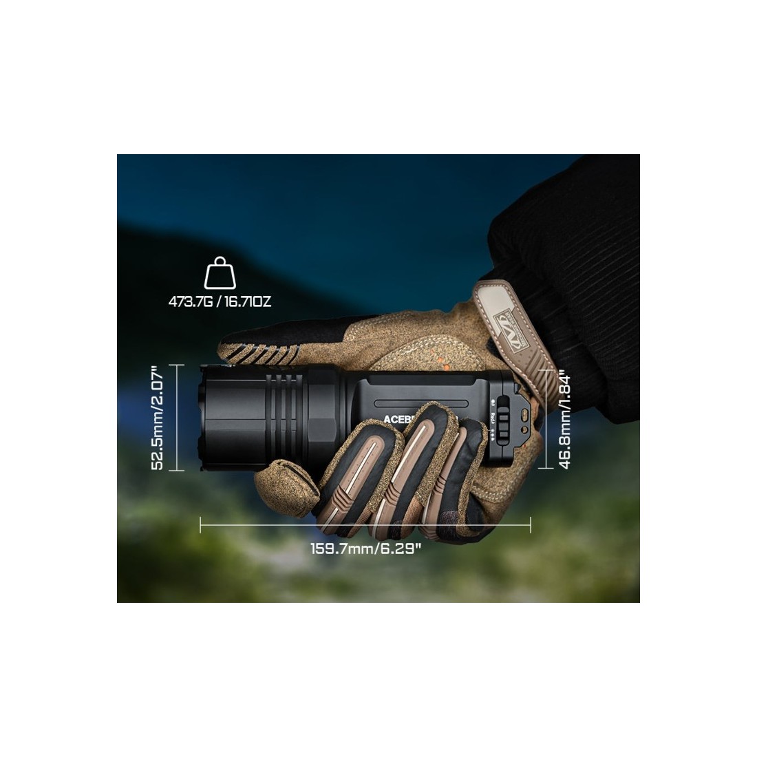 Latarka ACEBEAM X30 wyposażona w diody CREE XHP70.2 6500K to wyjątkowo mocna konstrukcja generująca aż 20 000 lumenów oraz zasięg do 600 metrów. Model oferuje dwa źródła światła – intensywne światło białe oraz niezależne światło czerwone – co czyni ją wszechstronnym narzędziem do działań terenowych, poszukiwawczych i nocnych operacji.