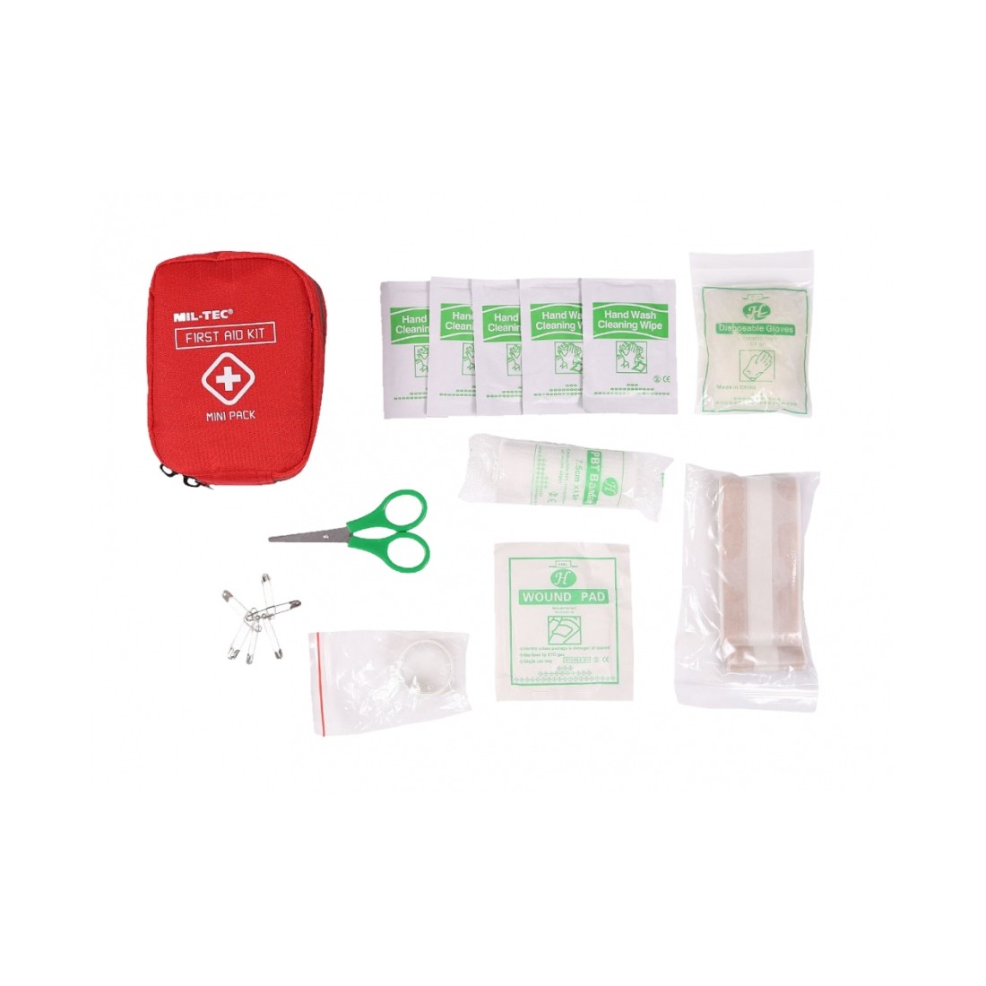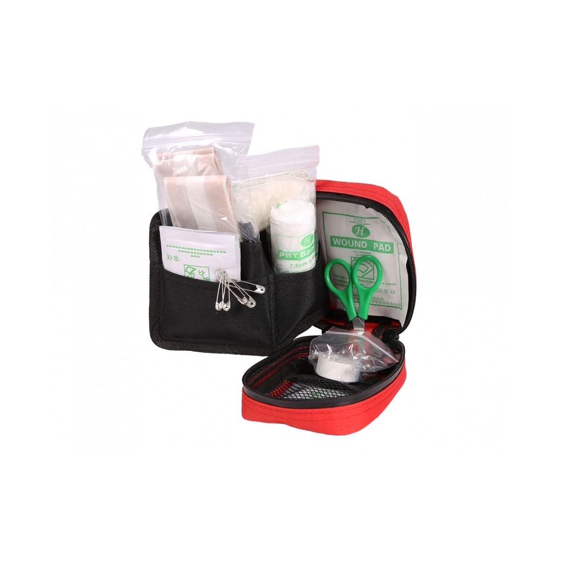 ✅ Dodatki: kompres 50 x 50 mm, nożyczki, rękawiczki, 5 chusteczek, 6 agrafek, 4 woreczki