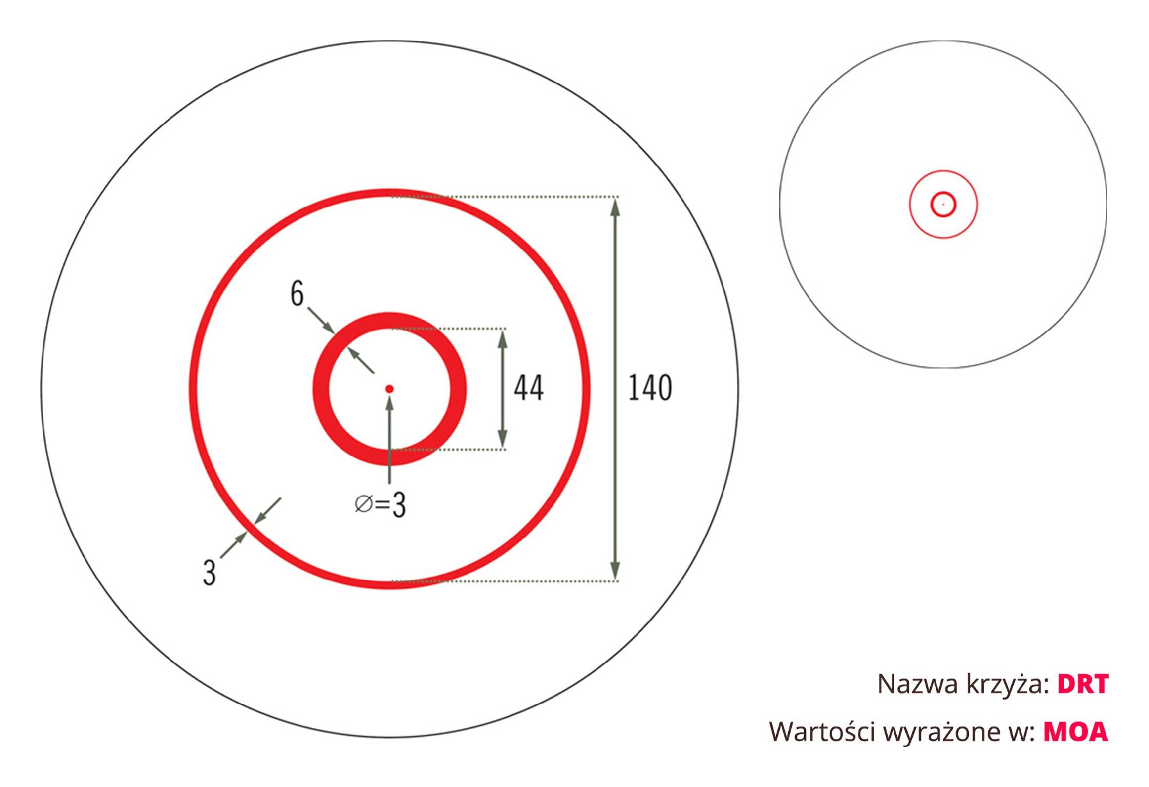 - Siatka celownicza DRT MOA podświetlana na czerwono i zielono
