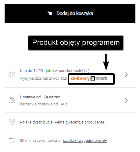 - Program delivery2max jest dostępny wyłącznie dla klientów dokonujących zakupy bezpośrednio na stronie internetowej 2max.pl oraz dokonujących płatności za pomocą strony 2max.pl. Zakupy zrealizowane za pomocą aplikacji inpost nie są objęte programem delivery2max.