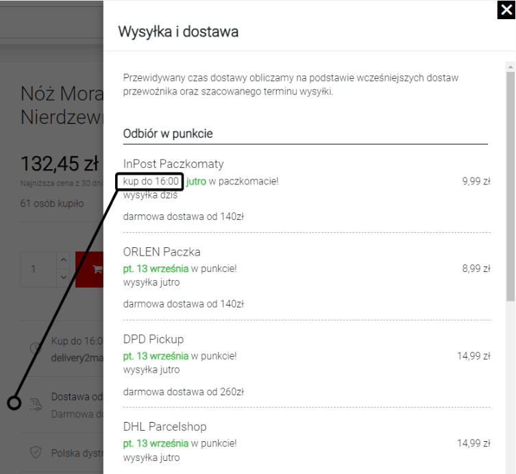 • Zmieść się w godzinie granicznej wysyłki danego przewoźnika - godziny graniczne są wyszczególnione w sekcji "Dostawa" na karcie produktu.