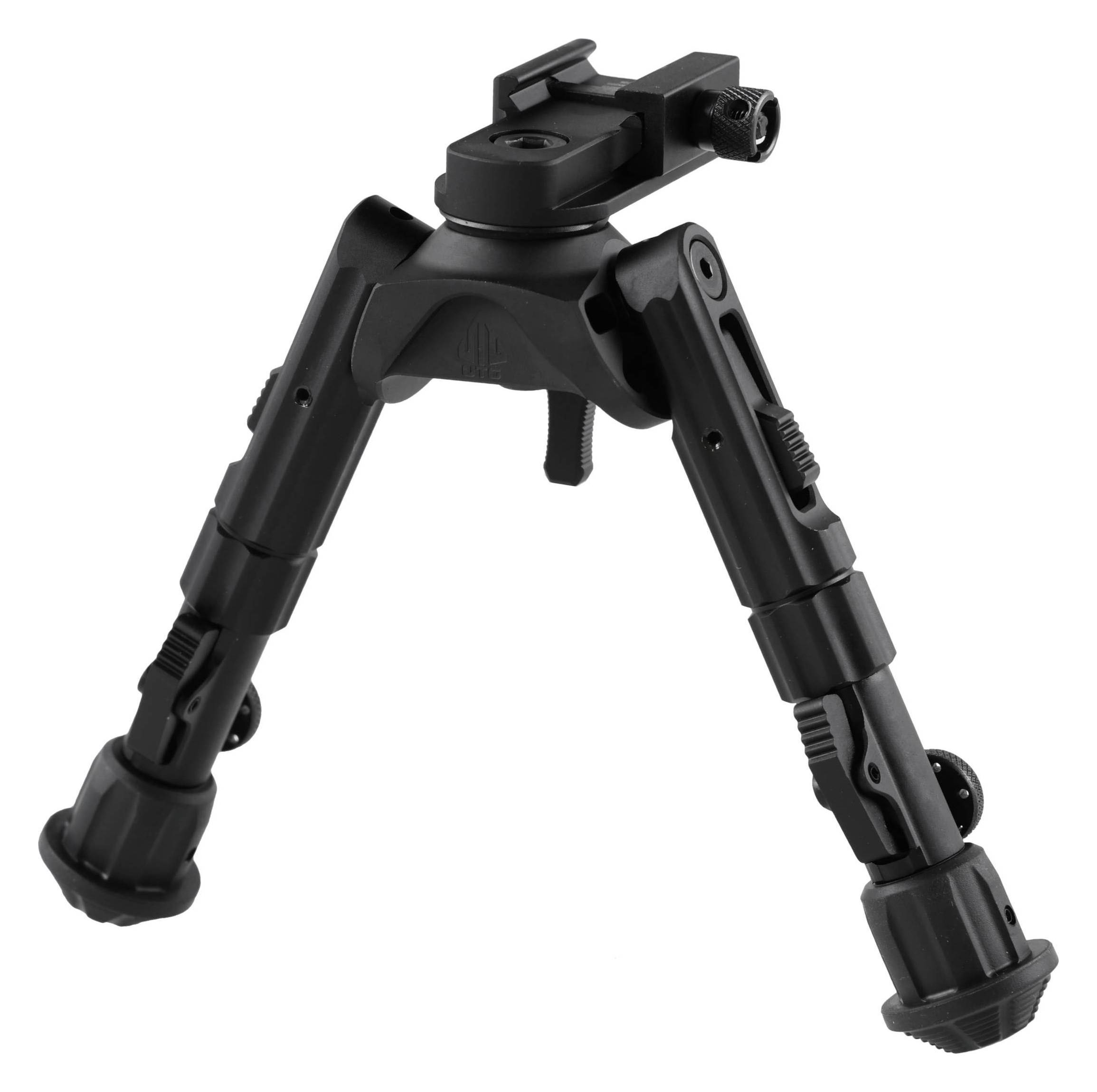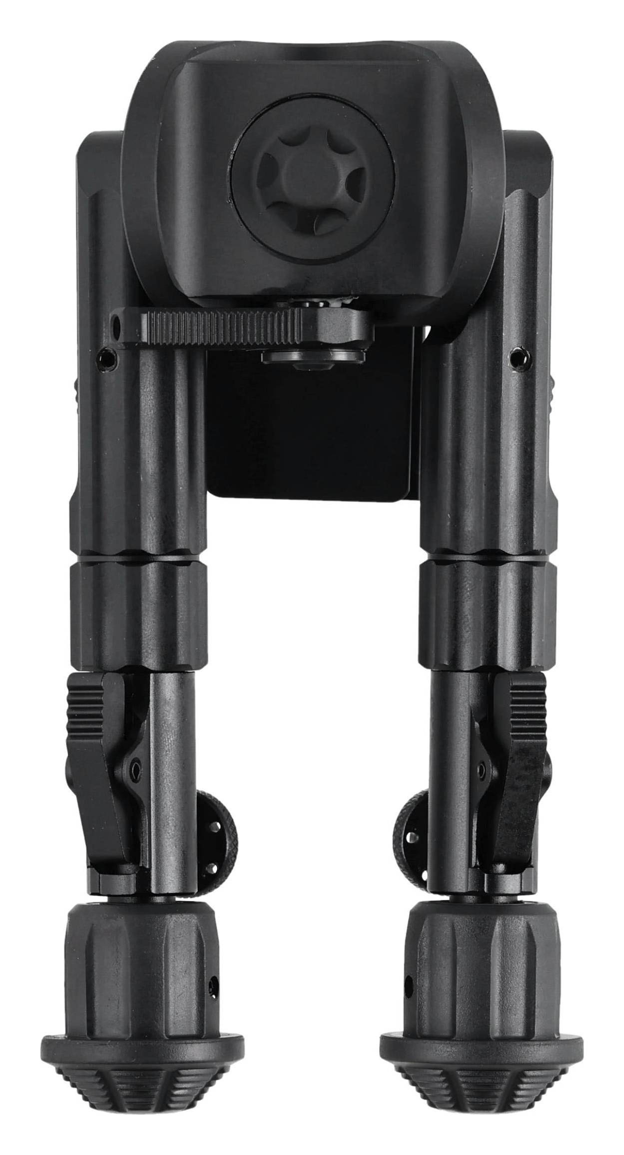 Model wyposażono w bazę montażową Picatinny 22 mm oraz adapter do montażu na bączku karabinowym. Takie rozwiązanie zwiększa kompatybilność i pozwala na łatwe dopasowanie bipodu do różnych typów broni.