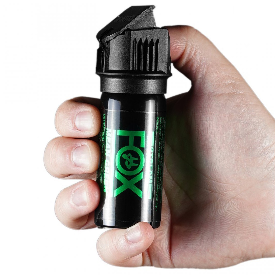 Gaz pieprzowy Fox Labs Mean Green 6% OC 43 ml to skuteczny środek do samoobrony, który łączy wysoką moc działania z łatwością użycia. Dzięki zasięgowi do 5 metrów oraz formie szerokiej chmury (stożka), pozwala szybko i efektywnie obezwładnić napastnika nawet w dynamicznej sytuacji.