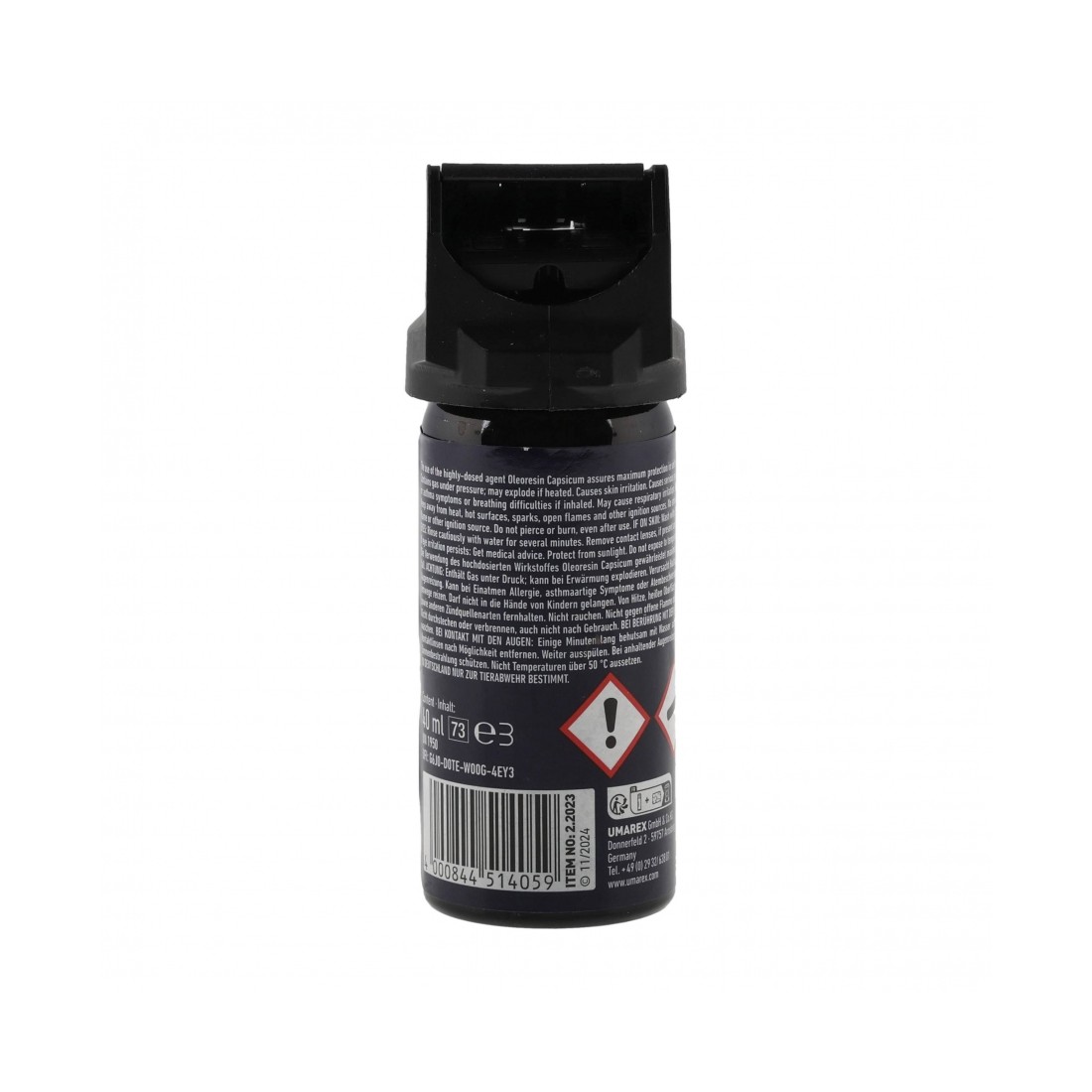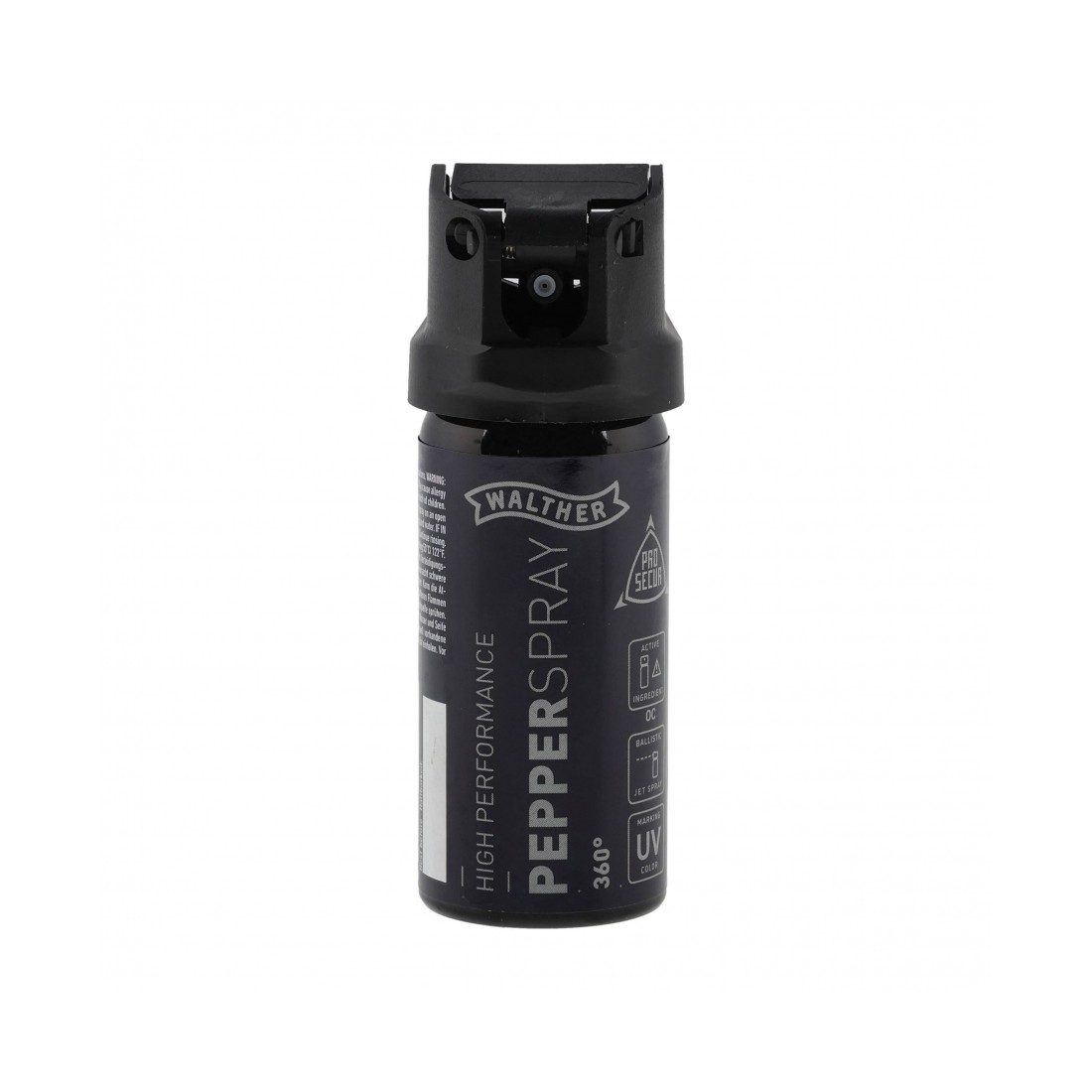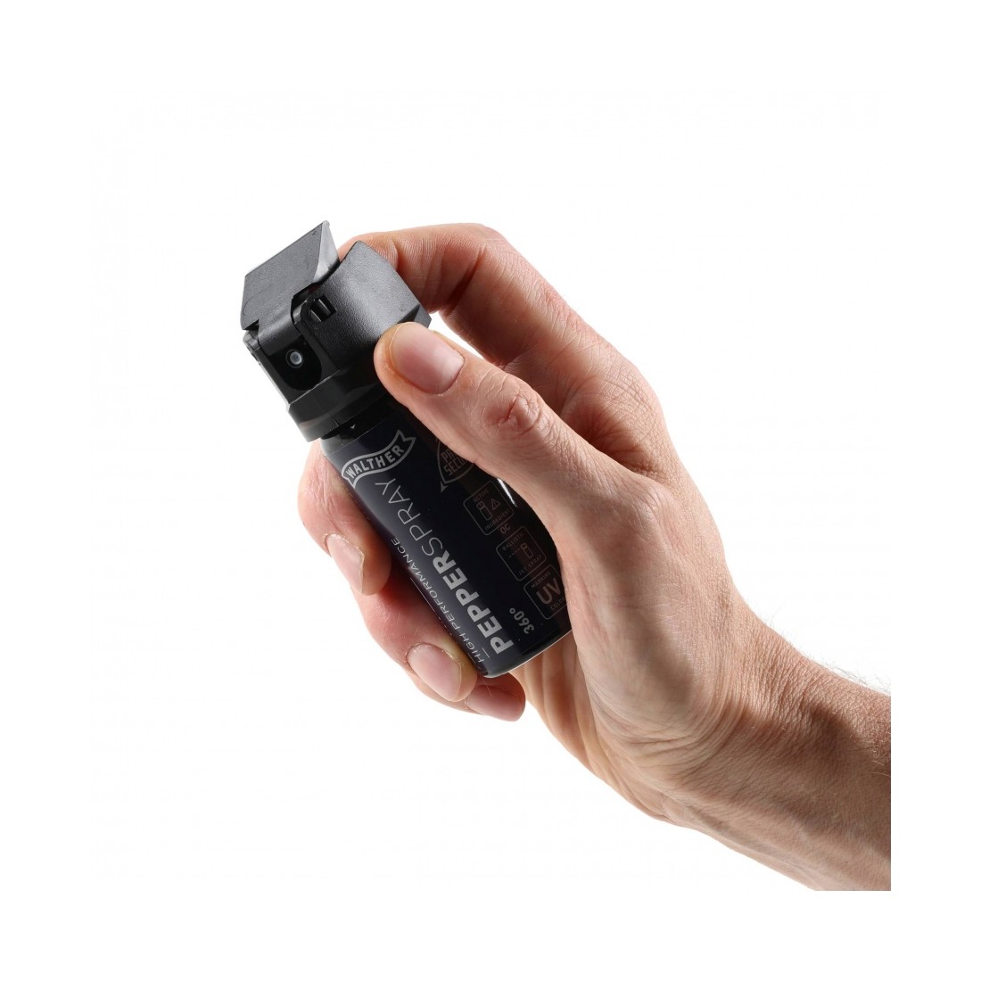 Kompaktowa pojemność 40 ml sprawia, że Walther Pro Secur 360° bez problemu zmieści się w kieszeni, torebce lub plecaku. Zabezpieczenie głowicy chroni przed przypadkowym użyciem, a ergonomiczna konstrukcja ułatwia szybkie i intuicyjne działanie.