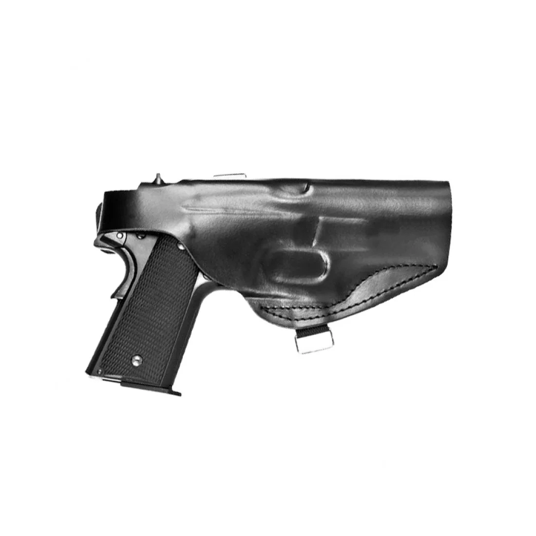 Wygoda przenoszenia to jedno, natomiast drugą sprawą jest bezpieczeństwo. Wyposażona w opaskę z solidnym zatrzaskiem kabura do pistoletu zapewnia utrzymanie broni we właściwej pozycji. Zatrzask jest umiejscowiony od strony ciała, zapobiegając wyciągnięciu jej przez niepowołane osoby. Nie ma również mowy o przypadkowym odpięciu i zgubieniu. Co więcej, elementy skórzane zostały wyprofilowane za pomocą specjalnych matryc 1:1 w taki sposób, aby między bronią a pokrowcem nie było luzów.
