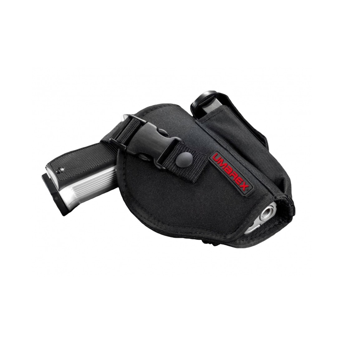 Uniwersalna kabura na pas Umarex przeznaczona jest do przenoszenia repliki czy wiatrówki wraz z zapasowym magazynkiem. Wykonana została z trwałego nylonu balistycznego. Jest to materiał o dużej odporności na przetarcie, roztarganie, wilgoć oraz pleśnienie. Wersja dostosowana dla osób praworęcznych.