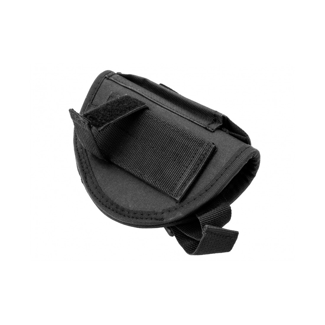 Kabura ma blokadę o regulowanej długości zapinaną na napę oraz klamrę typu fastex. Przednia ładownica umożliwia przenoszenie dodatkowego magazynka. Szerokość szlufka na pas można regulować za pomocą rzepa. Wersja dla praworęcznych. W przeciwieństwie do kabur z kydexu lub polimeru materiał nylonowy nie powoduje wytarcia zamka.