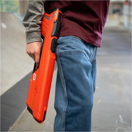 Z myślą o długotrwałym użytkowaniu, karabinek wyposażono w port USB-C, który umożliwia szybkie ładowanie baterii. Otwór na powietrze odprowadza nadmiar wody, chroniąc wewnętrzne mechanizmy przed zalaniem. Wbudowany filtr dba o to, by woda w zbiorniku była wolna od zanieczyszczeń, co przekłada się na wydajność i niezawodność urządzenia.