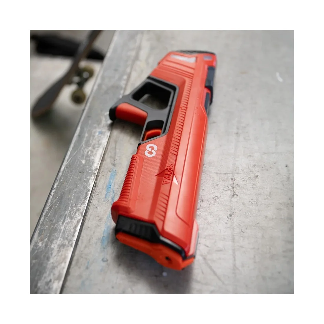 SpyraGo posiada również funkcję Quick Auto-Reload, która pozwala na napełnianie zbiornika w ciągu zaledwie kilku sekund. Ergonomiczny, teksturowany uchwyt gwarantuje pewny chwyt, nawet gdy ręce są mokre, a elegancki design podnosi estetykę produktu.