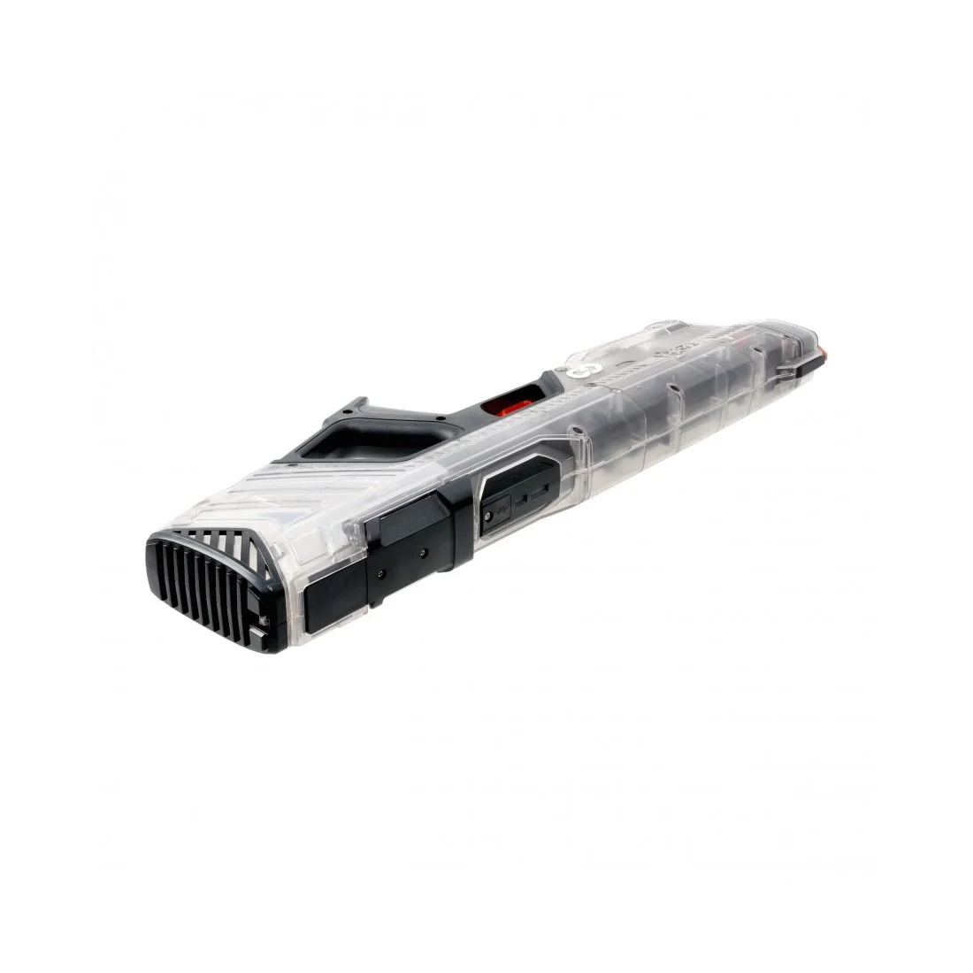 Załadowany karabinek umożliwia oddanie 22 pojedynczych wystrzałów. Urządzenie „wyrzuca” sporo wody, więc każde trafienie jest wyraźnie widoczne i satysfakcjonujące. Karabinek posiada wbudowany wyświetlacz taktyczny, który informuje o stanie zbiornika i baterii. Mechanizm utrzymuje stałe ciśnienie, dzięki czemu strumień wody jest silny i równomierny, a użytkownik nie musi ręcznie pompować karabinka.