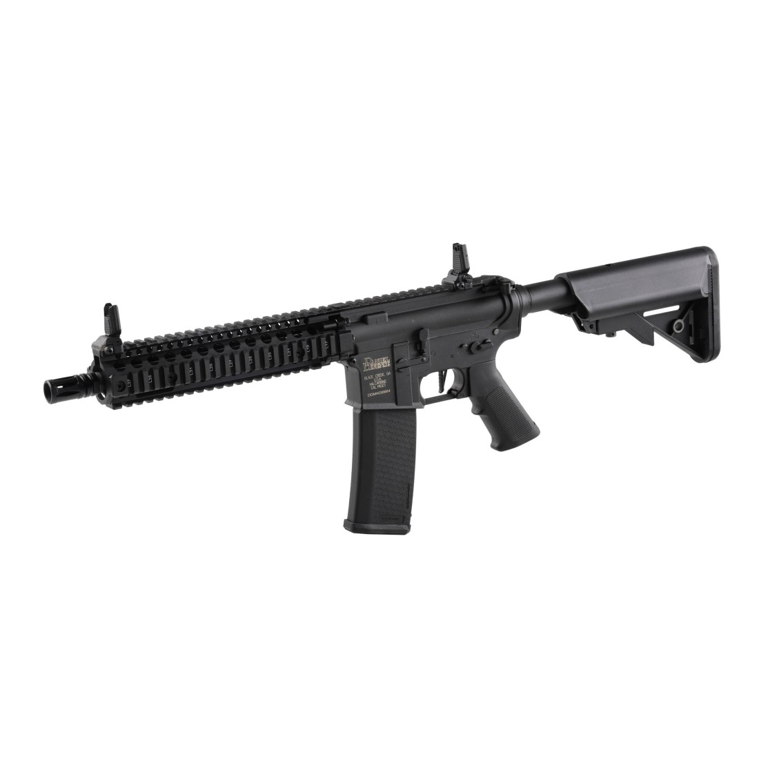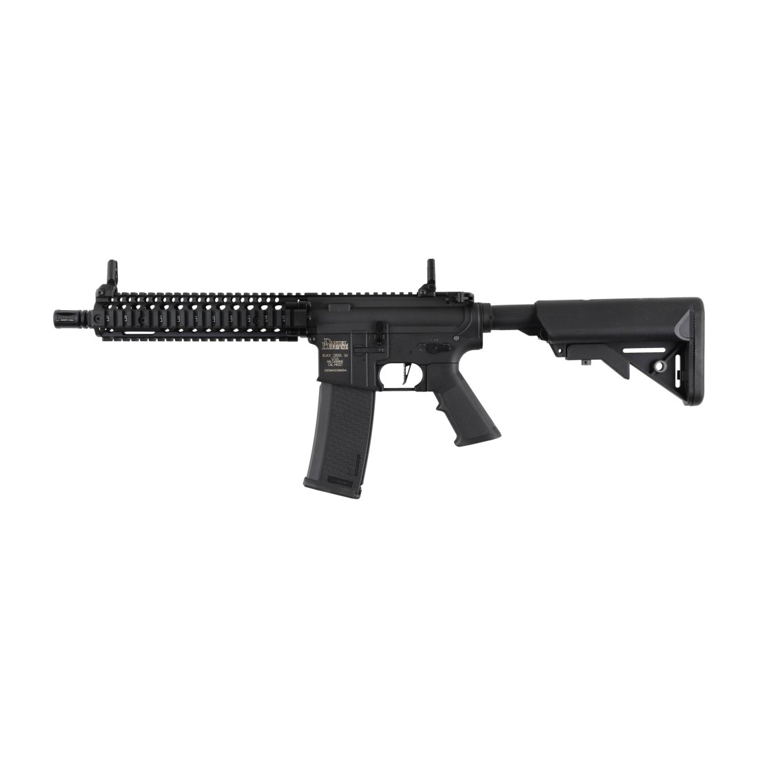 Elektryczna replika karabinka szturmowego z serii CORE wyposażona w układ HAL ETU oferuje solidną konstrukcję i wszechstronność. Korpus, prowadnica, kolba SF oraz chwyt pistoletowy zostały wykonane z trwałego tworzywa sztucznego wzmacnianego włóknem nylonowym, co zapewnia wytrzymałość i niską wagę. Elementy takie jak lufa, tłumik płomienia, rączka przeładowania i montaż zawieszenia taktycznego wykonano z metalu, natomiast drobne części, w tym śruby, piny, okno wyrzutu łusek oraz atrapa zamka, są stalowe. Replika posiada licencjonowane oznaczenia Daniel Defense, podkreślające jej autentyczność.