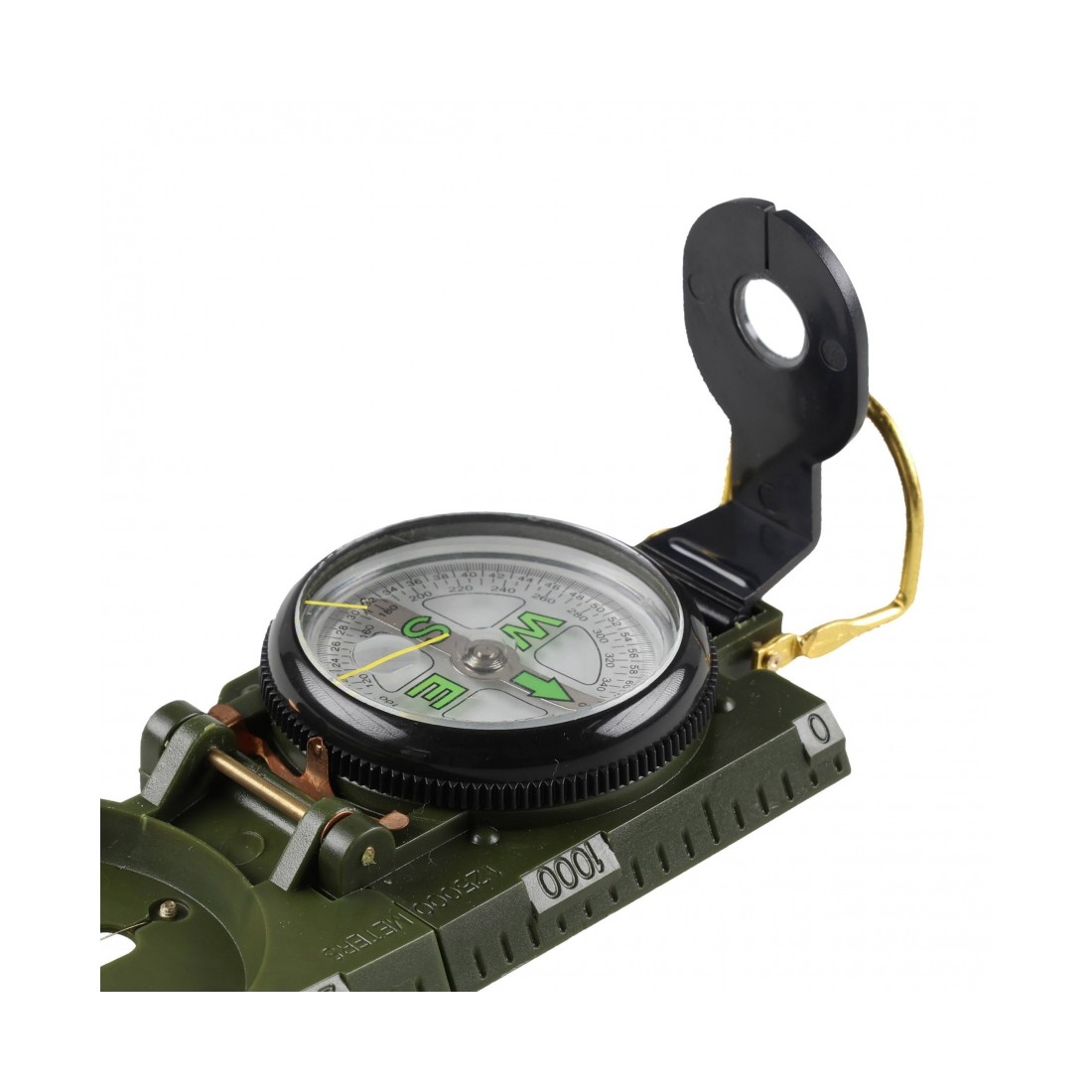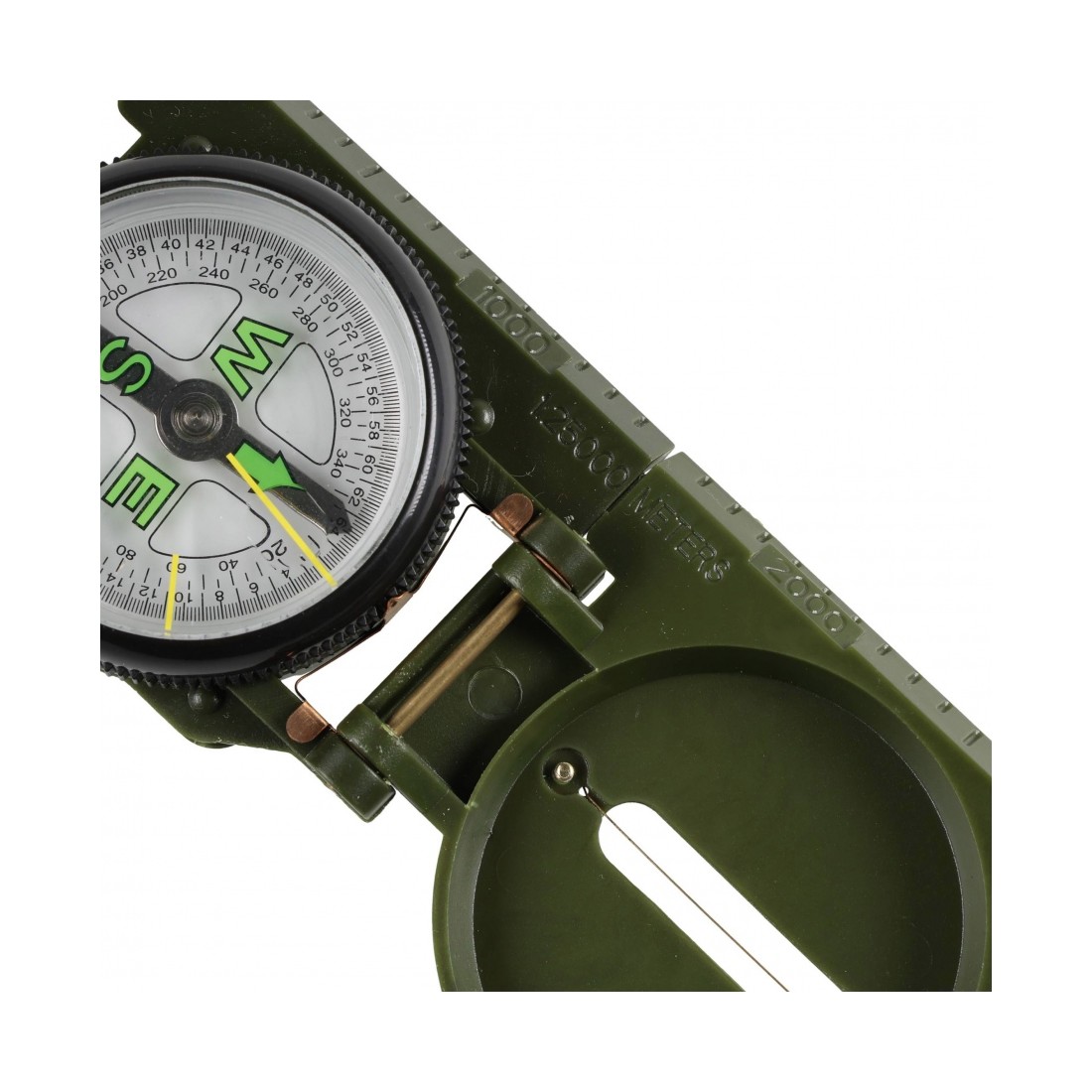 Tarcza wskazującą kierunek zanurzono w płynie, dzięki czemu kompas precyzyjnie wskazuje kierunku nawet podczas ruchu. Dodatkowo urządzenie wyposażono w muszkę w formie cienkiego drutu oraz przeziernikową szczerbinkę, zapewniającą większą dokładność pomiarów. Te funkcje zwykle spotyka się wyłącznie w kompasach namiarowych.