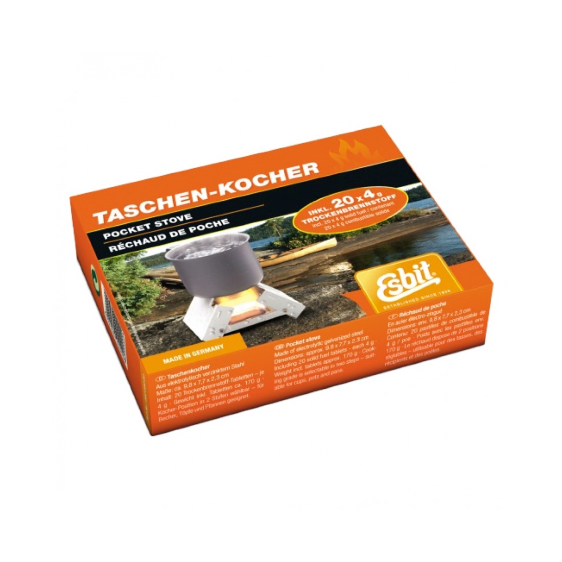 Najlżejsza wersja kuchenki Esbit...oczywiście nie mniej kompaktowa i prosta w użyciu. Idealnie pasuje do kawiarki Coffee Maker Esbit i innych.