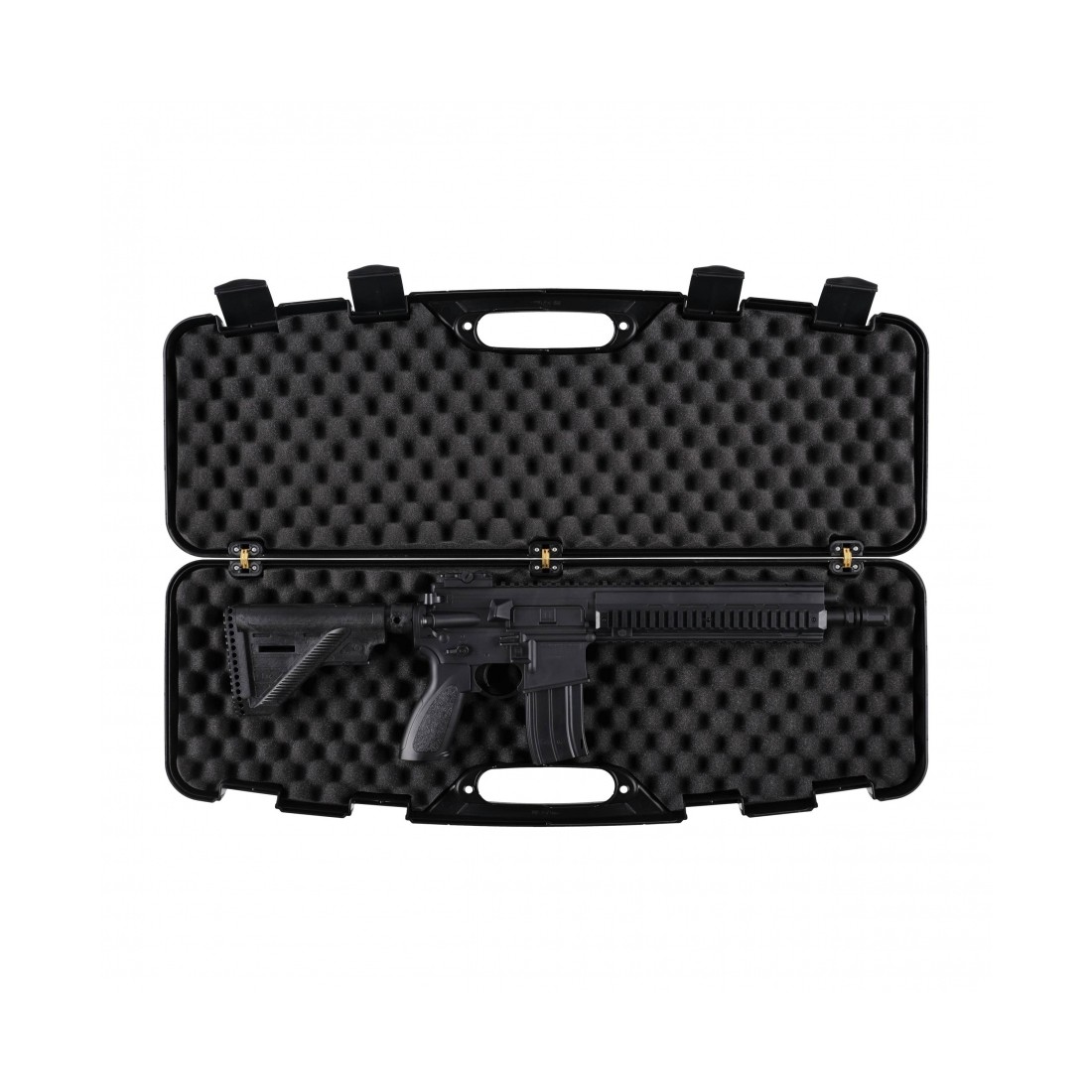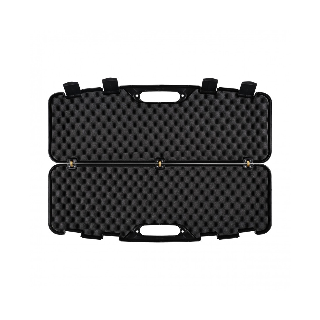 Wytrzymałe zawiasy i ścianki o grubości 3 mm zapewniają bezpieczny transport broni oraz trwałość walizki. Walizka w okolicach uchwytu transportowego posiada otwory umożliwiające zamocowanie kłódki, która będzie chroniła przenoszoną zawartość przed dostępem przez osoby do tego nieuprawnione.