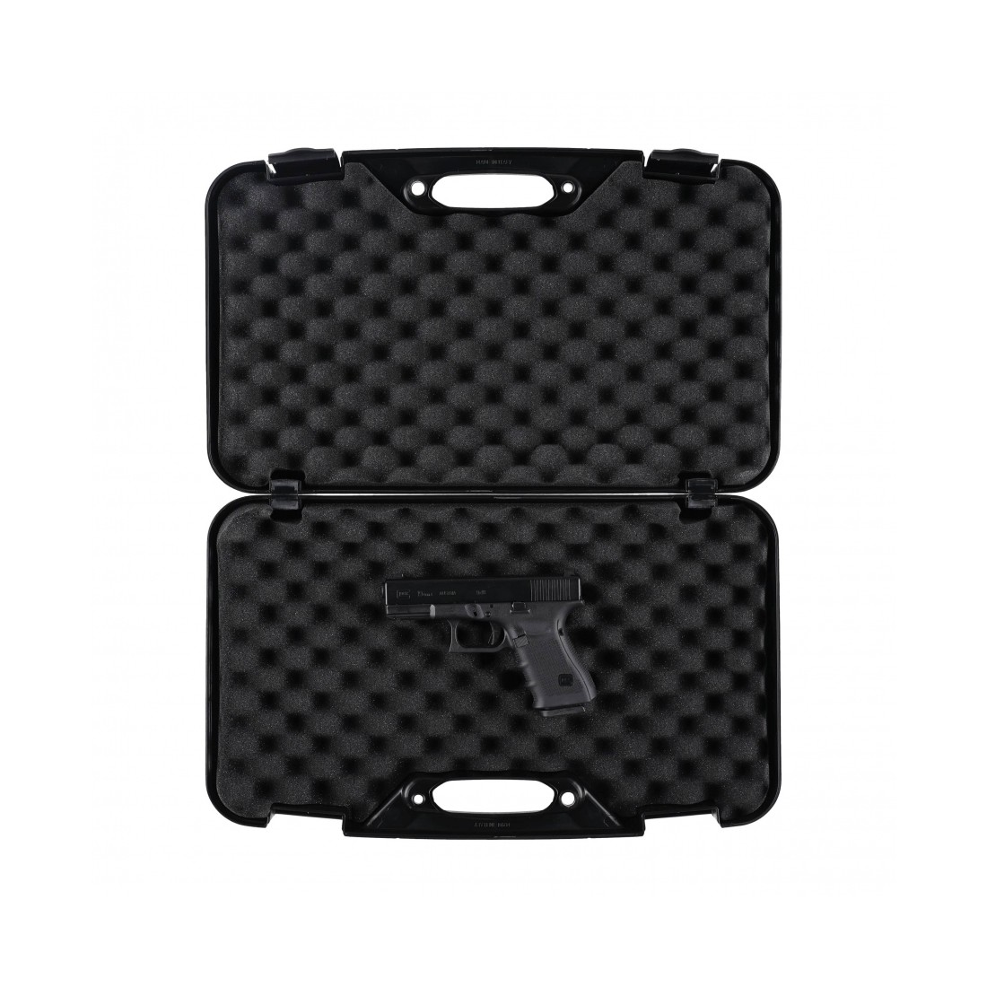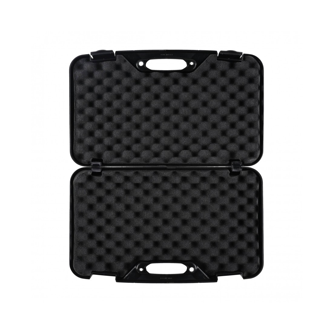 Kufer do transportu broni krótkiej, wykonany z wytrzymałego tworzywa, wyłożony grubą gąbką o strukturze tzw. szczęki rekina – tak aby broń podczas transportu nie miała możliwości przesuwu.