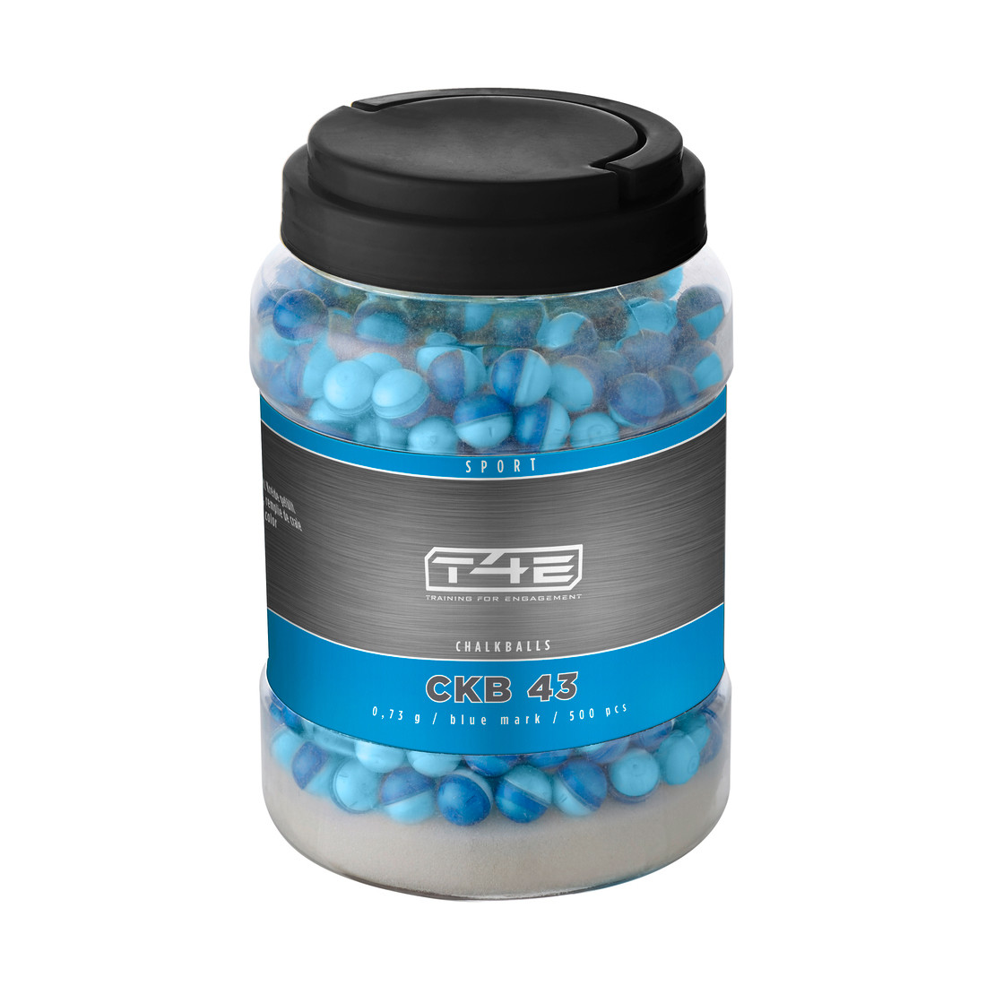Kule proszkowe T4E Sport CKB kal. .43 500 szt. niebieskie to lekka amunicja treningowa z proszkiem barwiącym, która po trafieniu widocznie znakuje cel lub przeciwnika.