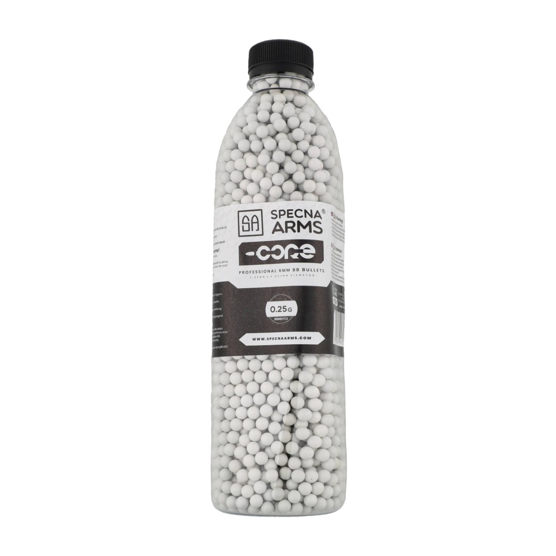 Kulki Specna Arms CORE o wadze 0,25 grama to dobrej jakości amunicja do replik ASG. Kulki wykonane są z materiałów w pełni biodegradowalnych, których rozkład następuje pod wpływem wody. Wykonanie kul umożliwia ich stosowanie przy każdym rodzaju lufy, włącznie z precyzyjnymi. Polerowana powierzchnia zapewnia dobrą współpracę z systemem podkręcenia kulki Hop-Up.