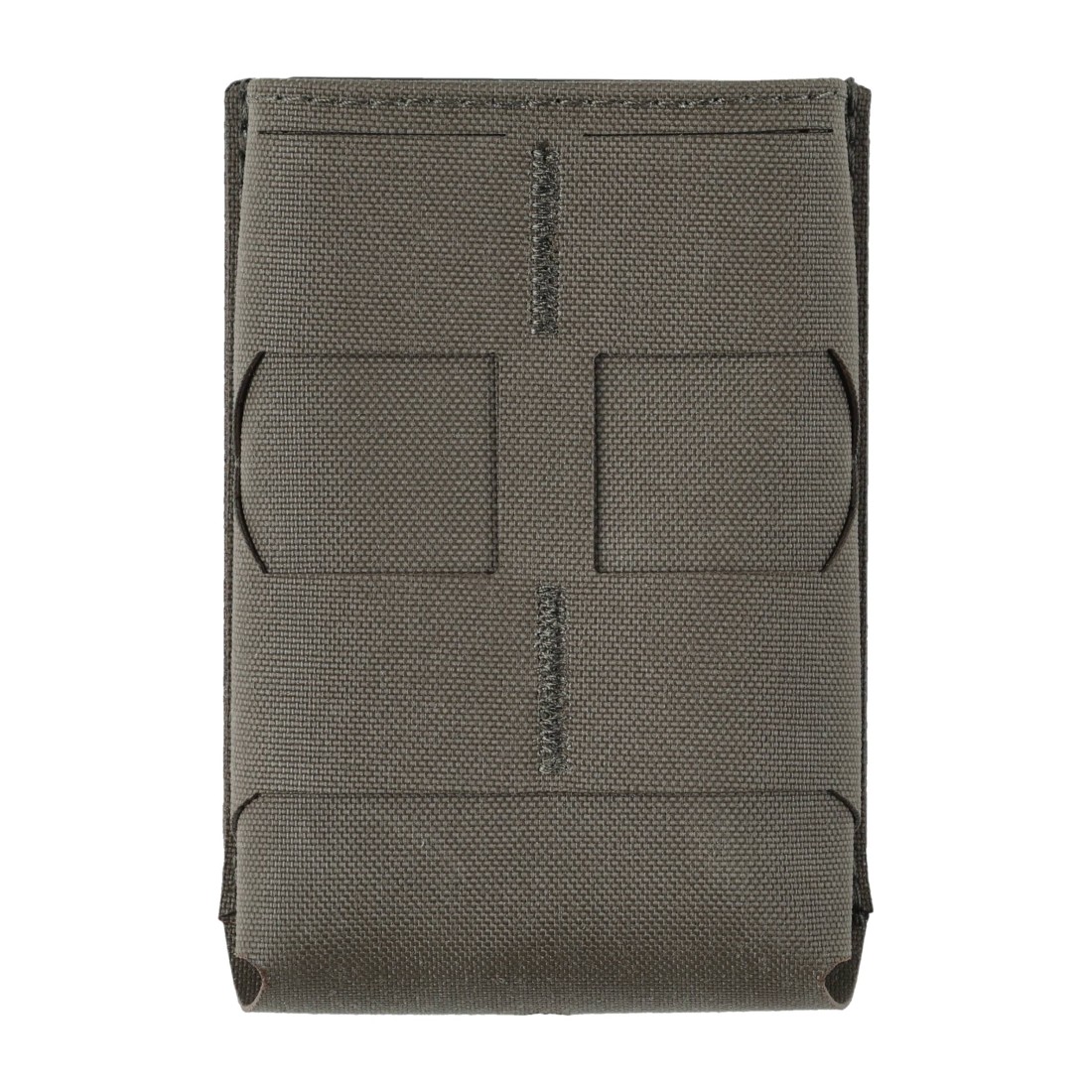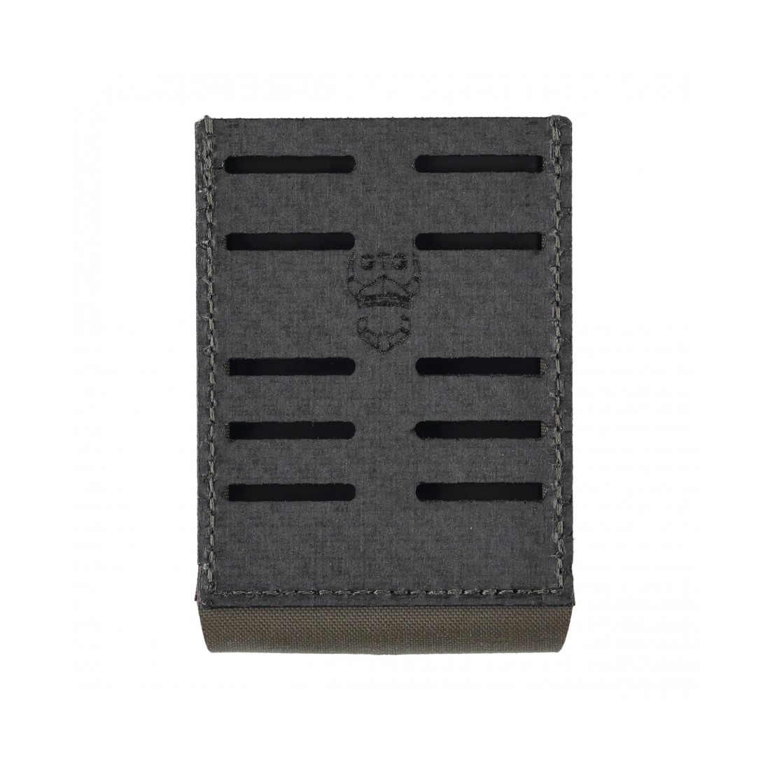 Na froncie ładownicy TOTEM zlokalizowane są komórki PALS, które umożliwiają mocowanie dodatkowej ładownicy lub kieszonki np. na multitoola. Do montażu ładownicy na pasie lub kamizelce taktycznej wykorzystywany jest usztywniony panel, który z dedykowanymi trokami pozwalają na stabilne i pewne zamocowanie ładownicy.