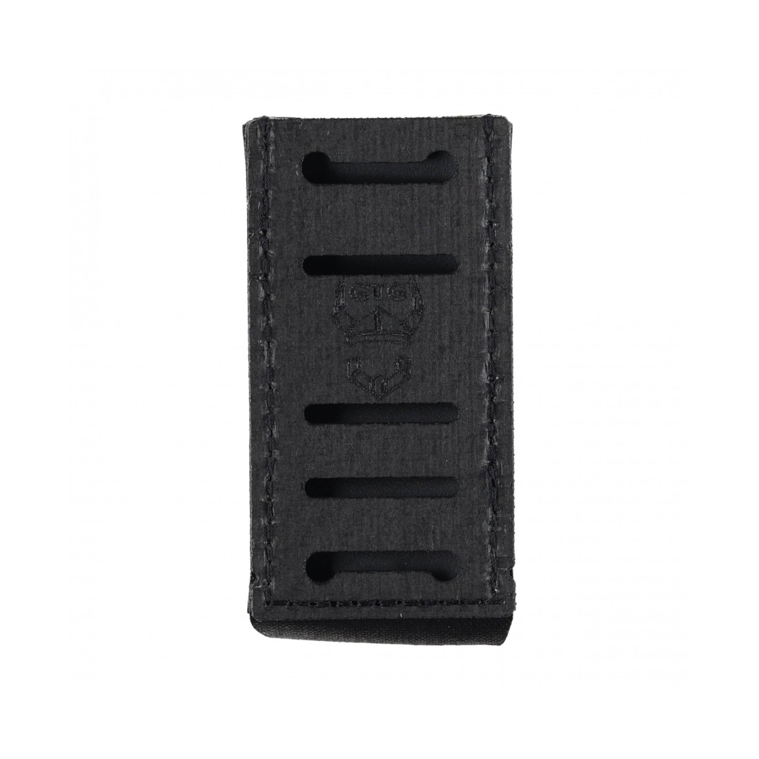 Na froncie ładownicy TOTEM zlokalizowane są komórki PALS, które umożliwiają mocowanie dodatkowej ładownicy lub kieszonki np. na multitoola. Do montażu ładownicy na pasie lub kamizelce taktycznej wykorzystywany jest usztywniony panel, który z dedykowanymi trokami pozwalają na stabilne i pewne zamocowanie ładownicy.