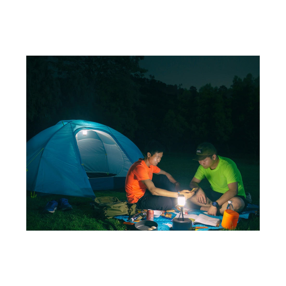 - skierować strumień światła w dół np. do oświetlenia wnętrza namiotu (dwa tryby jasności)