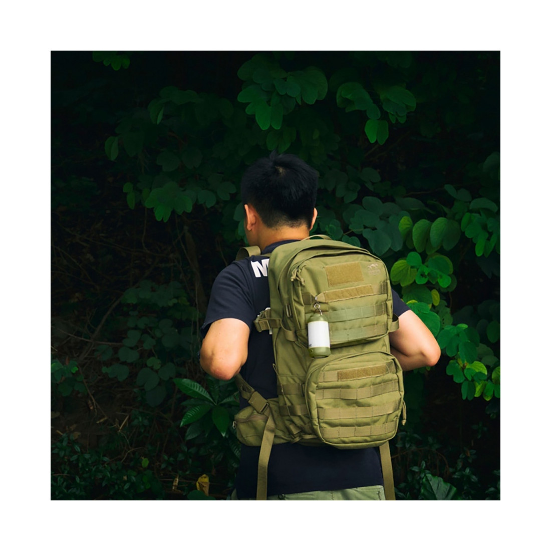 - za pomocą metalowego uchwytu i karabińczyka do plecaka lub rurki namiotowej