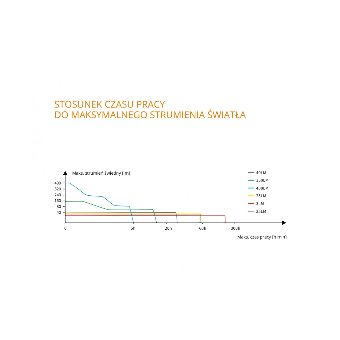 - ukierunkować światło o strumieniu 25 lumenów do przodu np. do czytania