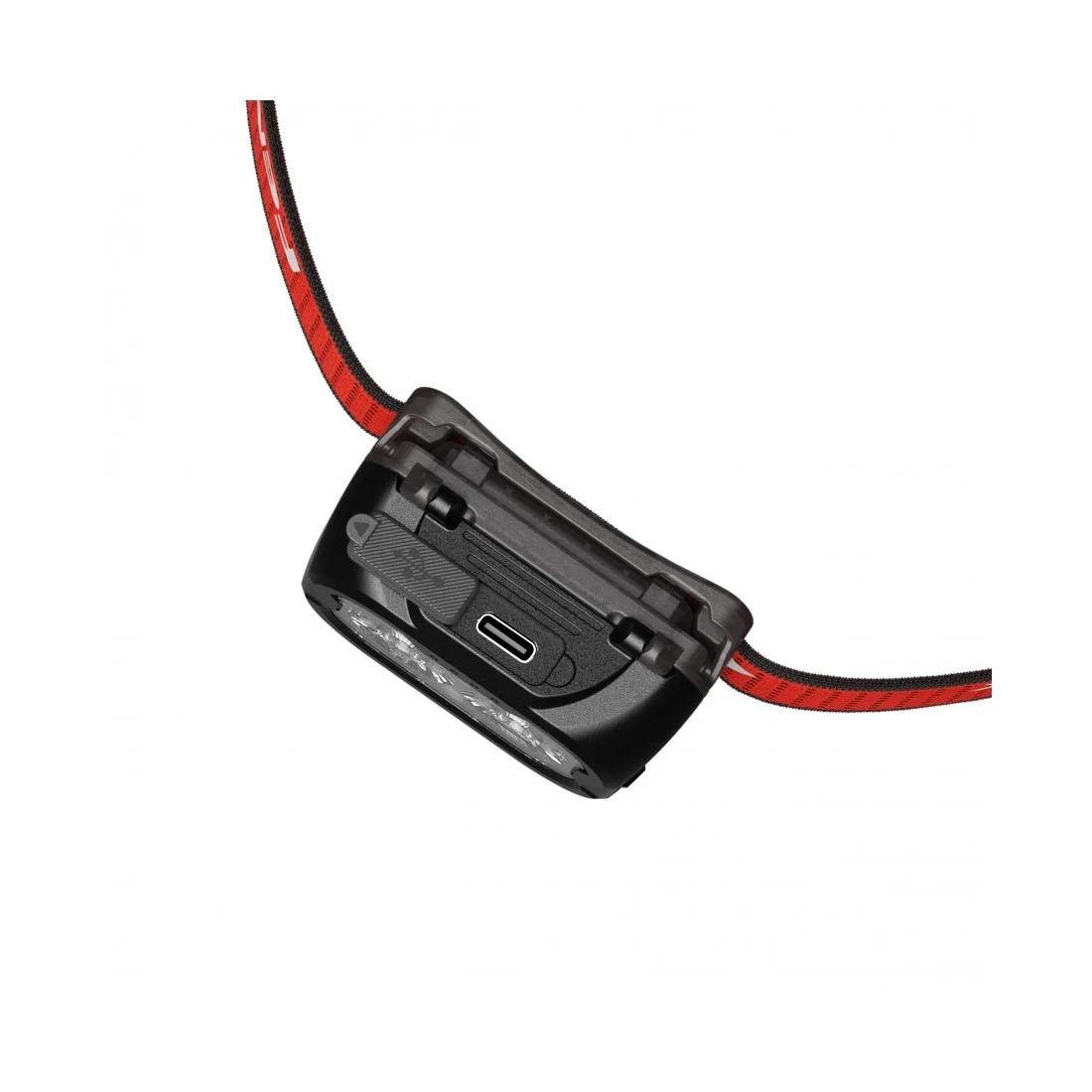 HL18R-T V2.0 posiada unikalny mechanizm blokady przesuwnej, który zapobiega przypadkowemu włączeniu latarki. Jest również odporna na upadki z wysokości 1,5 metra i spełnia normę wodoodporności IP66, co oznacza ochronę przed kurzem i silnym deszczem. Źródłem zasilania jest akumulator 1900 mAh, zapewniający do 160 godzin pracy. Latarka obsługuje także trzy baterie AAA jako alternatywne źródło zasilania. Ładowanie odbywa się poprzez port USB-C, a wskaźnik poziomu naładowania pozwala na bieżące monitorowanie stanu akumulatora. Opaska SPORT Headband Fit System umożliwia szybkie dostosowanie długości poprzez obrót pokrętła. Dodatkowo latarka posiada gwizdek alarmowy, perforowany pasek zwiększający oddychalność oraz zdejmowaną, nadającą się do prania opaskę.