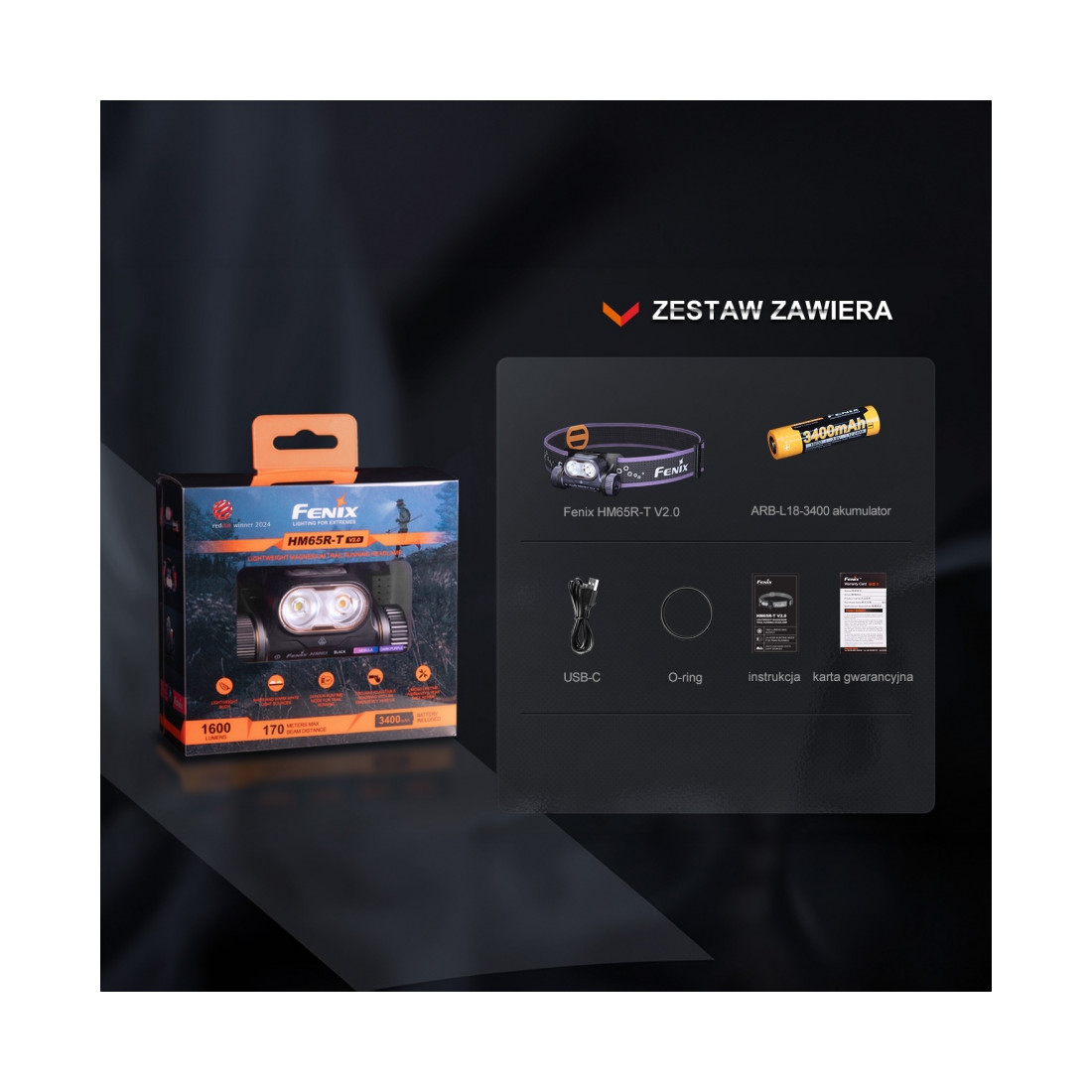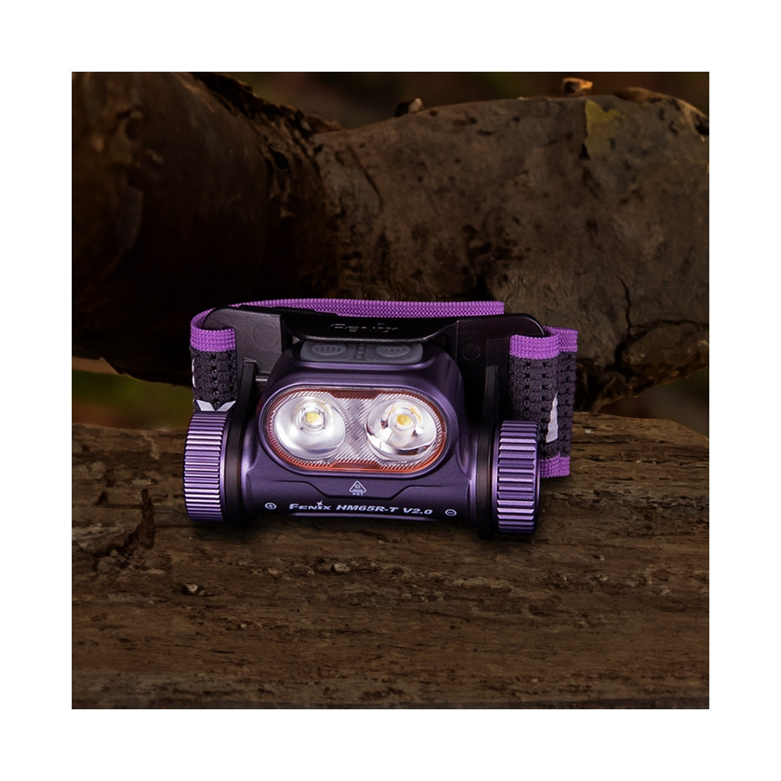 Fenix HM65R-T V2.0 to zmodernizowana wersja bestsellerowej latarki czołowej, która dzięki zastosowaniu dwóch diod SST-40 i SST-20 oraz opatentowanego systemu regulacji opaski zapewnia mocniejszy strumień światła, komfortowe oświetlenie najbliższego obszaru oraz wszechstronną funkcjonalność podczas nocnych trekkingów, bytowania w terenie jak i w trakcie prac wykonywanych w warunkach szczątkowego oświetlenia.