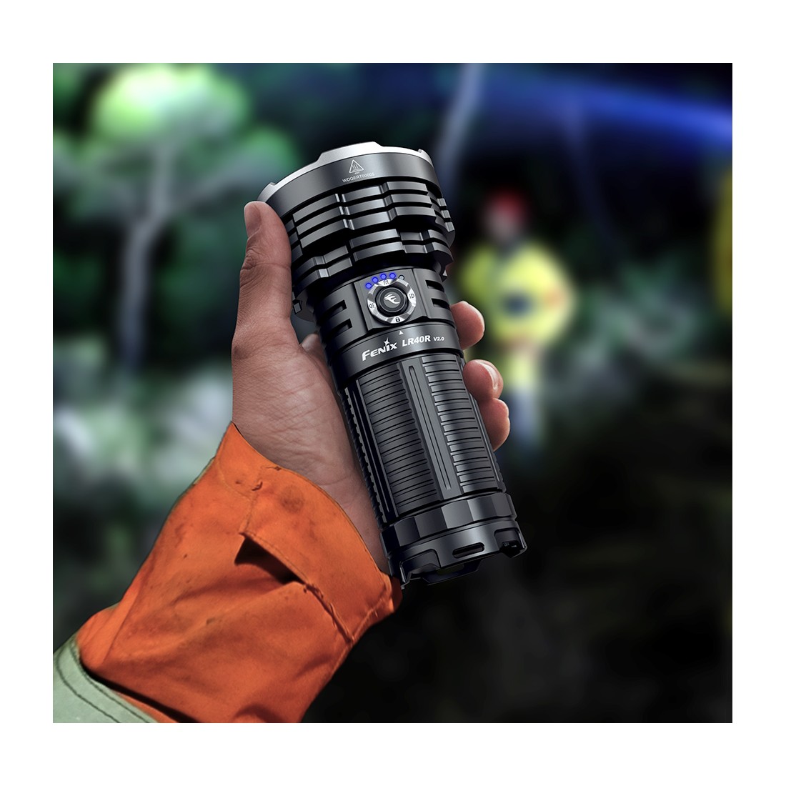 Fenix LR40R V2.0 wyposażono w obrotowy przełącznik oraz przycisk elektroniczny, które umożliwiają szybkie zarządzanie aż 16 trybami pracy. Ergonomiczne rozmieszczenie przycisków pozwala na wygodne sterowanie nawet w rękawicach.