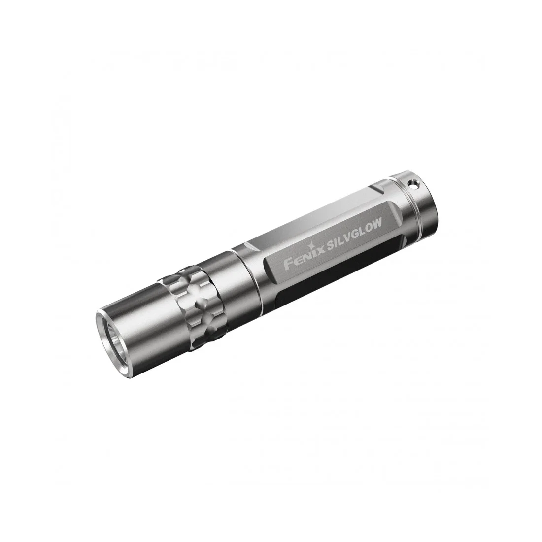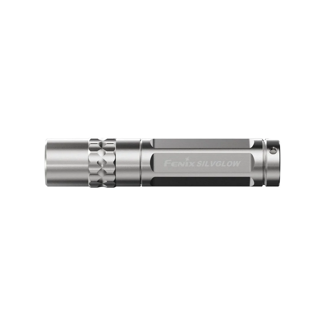 Latarka diodowa Fenix SilvGlow srebrna to wyjątkowe urządzenie, która łączy w sobie elegancki styl, solidne wykonanie i wysoką wydajność, dzięki czemu idealnie wpisuje się w zestaw EDC (Every Day Carry). Latarka LED Fenix pomimo niewielkich rozmiarów oferuje moc aż 100 lumenów, które rozświetlą w ciemności nasze najbliższe otoczenie. Do dyspozycji użytkownik ma trzy poziomy jasności, z których może korzystać i dostosować moc świecenia do panujących warunków.