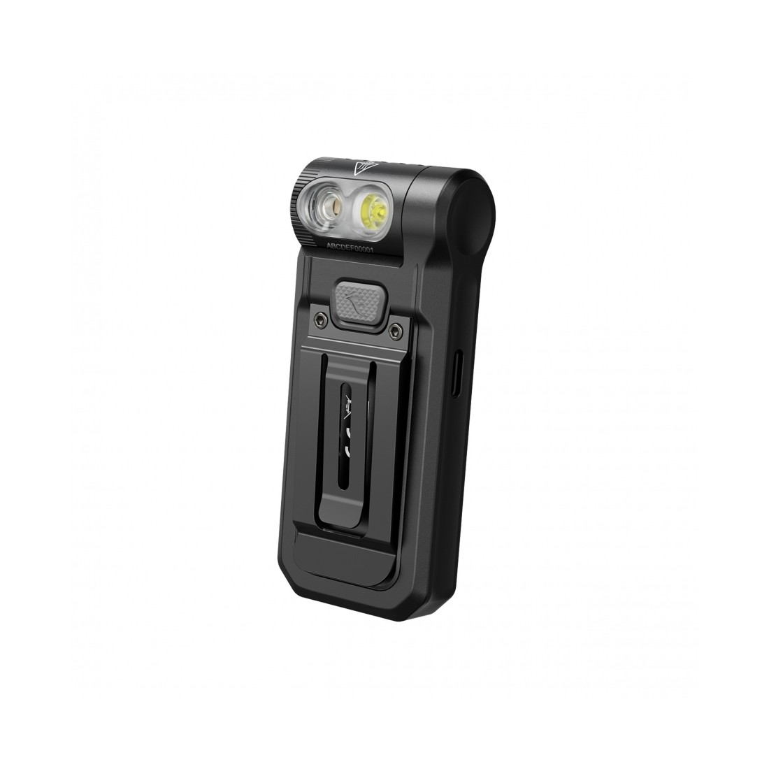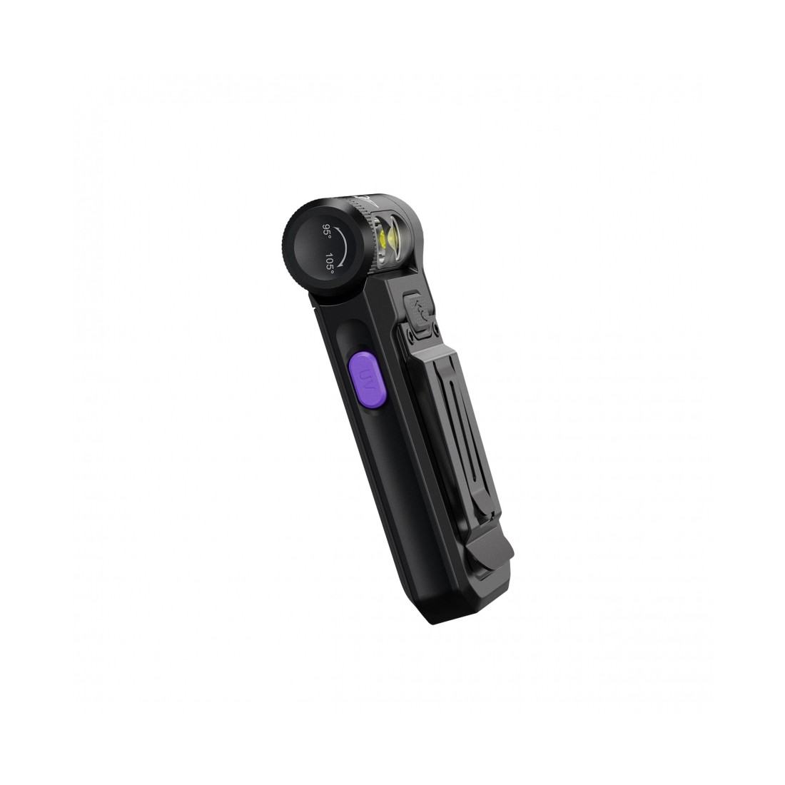 Dzięki regulowanemu kątowi świecenia 200° umożliwia precyzyjne skierowanie wiązki światła. Dwa niezależne przełączniki pozwalają na intuicyjne sterowanie każdym trybem. Wbudowany akumulator o pojemności 700 mAh można wygodnie ładować poprzez niepodatny na zalanie port USB-C. Magnetyczna podstawa pozwala na przymocowanie latarki do metalowych powierzchni, a klips umożliwia wygodne mocowanie do odzieży czy ekwipunku. Latarka posiada klasę wodoodporności IPX6, co czyni ją niezawodnym towarzyszem podczas trekkingu, wspinaczki, poszukiwań bursztynu lub sprawdzania banknotów.