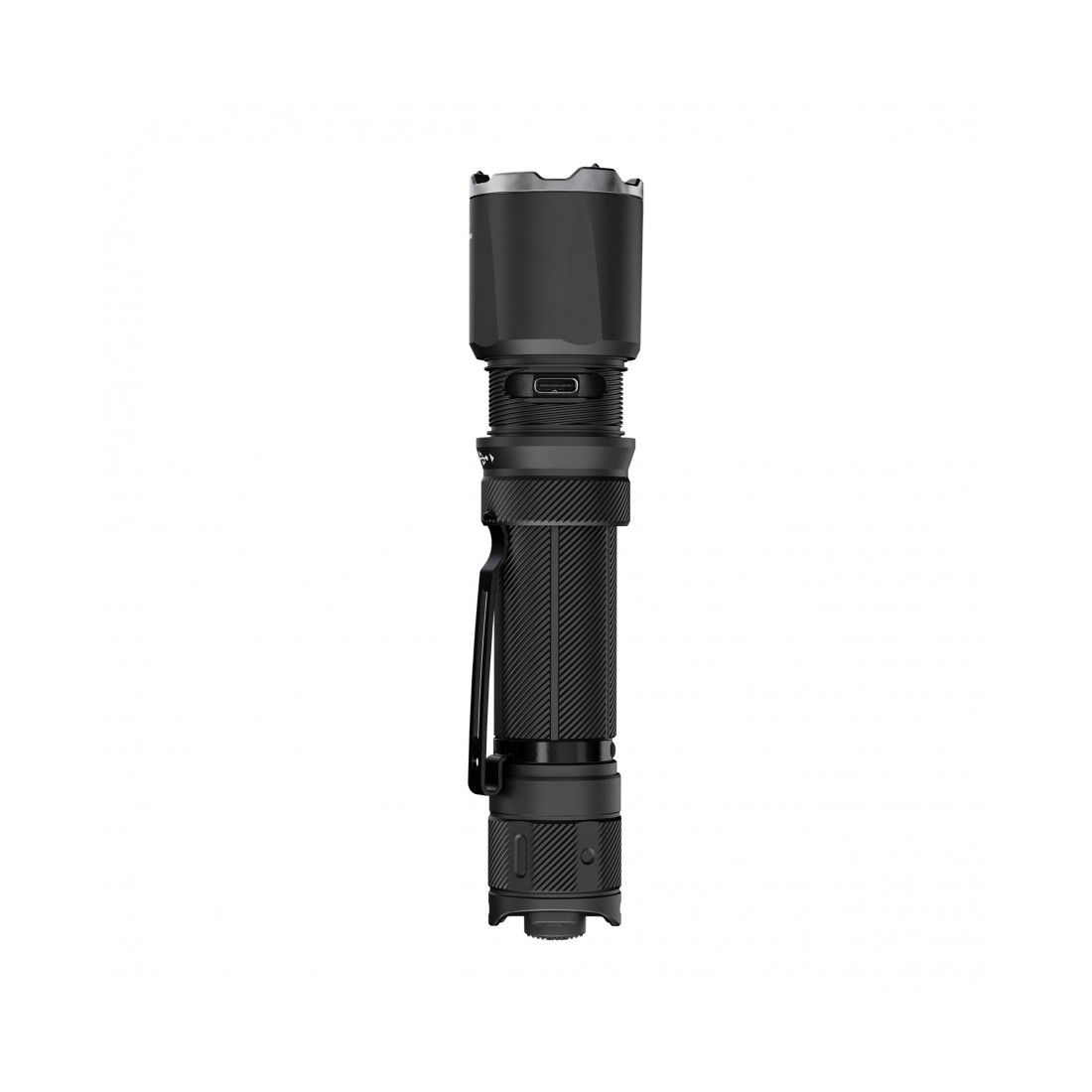 Latarka zasilana jest akumulatorem Fenix ARB-L21-6000 (21700, 6000 mAh), zapewniającym długi czas pracy i stabilne napięcie. Wbudowany port USB-C pozwala na szybkie ładowanie bez użycia zewnętrznej ładowarki – wystarczy kabel USB-C (w zestawie) oraz dowolne źródło zasilania, np. power bank czy ładowarka samochodowa. Pełne ładowanie od 1% do 100% trwa ok. 1,5 godziny, a akumulator zapewnia do 150 minut pracy w trybie Turbo. Dodatkowo podwójne sprężyny w przedziale akumulatora zwiększają odporność na wstrząsy, upadki oraz odrzut broni.