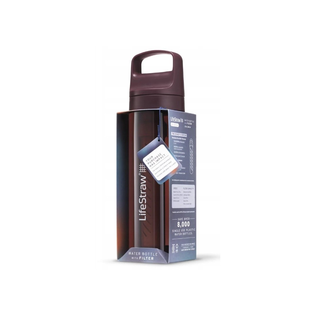 - Zestaw zawiera: butelkę LifeStraw, filtr membranowy, filtr węglowy, zakrętkę z ustnikiem silikonowym, instrukcję, oryginalne opakowanie