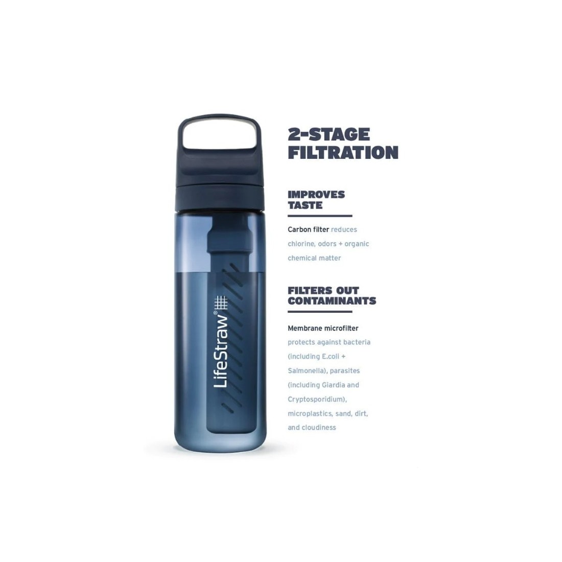 LifeStraw Go Series to nowoczesna, ekologiczna butelka filtrująca, która gwarantuje czystą i bezpieczną wodę w każdej sytuacji – w podróży, na szlaku, w pracy czy na siłowni. Dzięki zaawansowanemu, dwustopniowemu systemowi filtracji usuwa niebezpieczne zanieczyszczenia i poprawia smak wody, pozwalając Ci pić prosto z kranu, strumienia czy publicznego źródła.