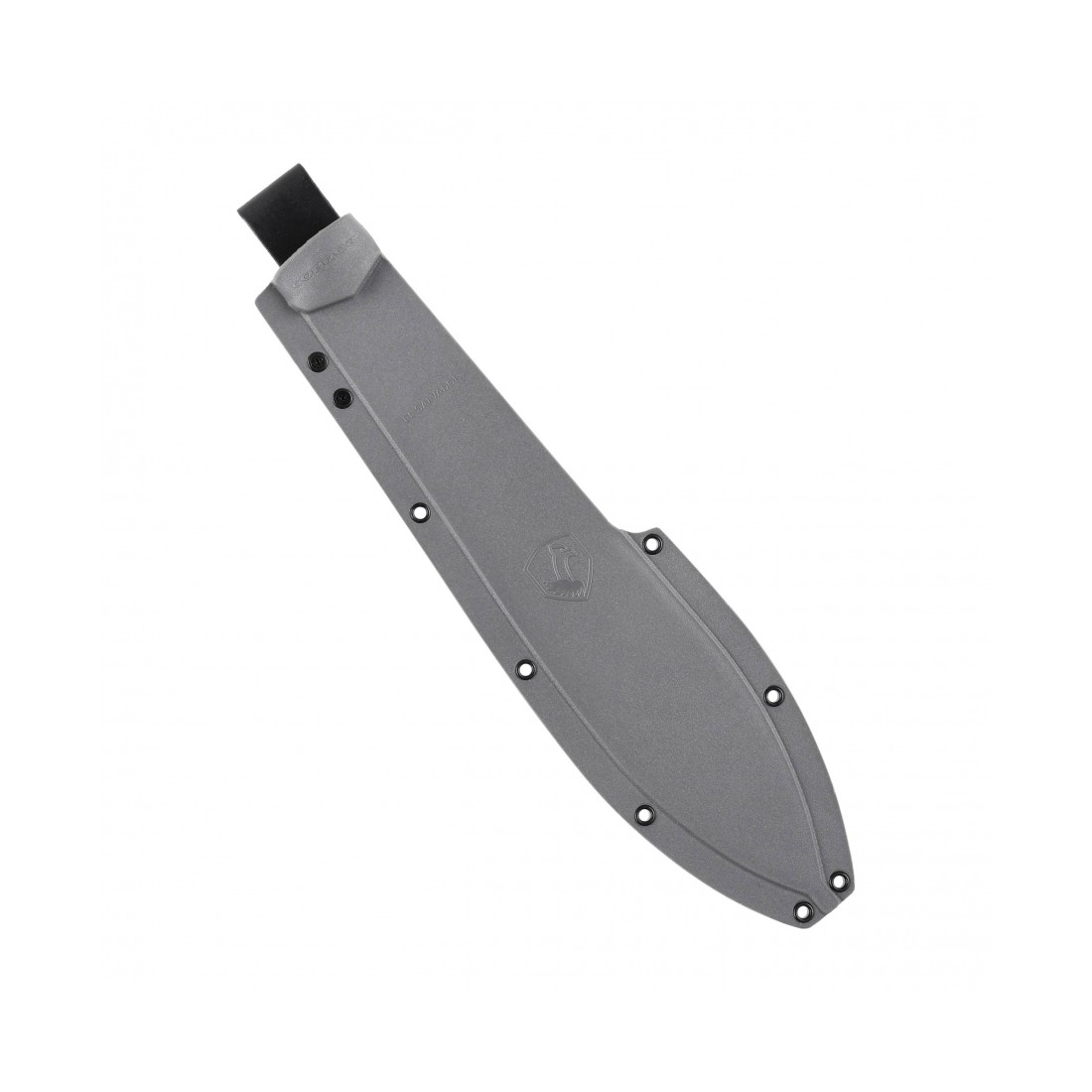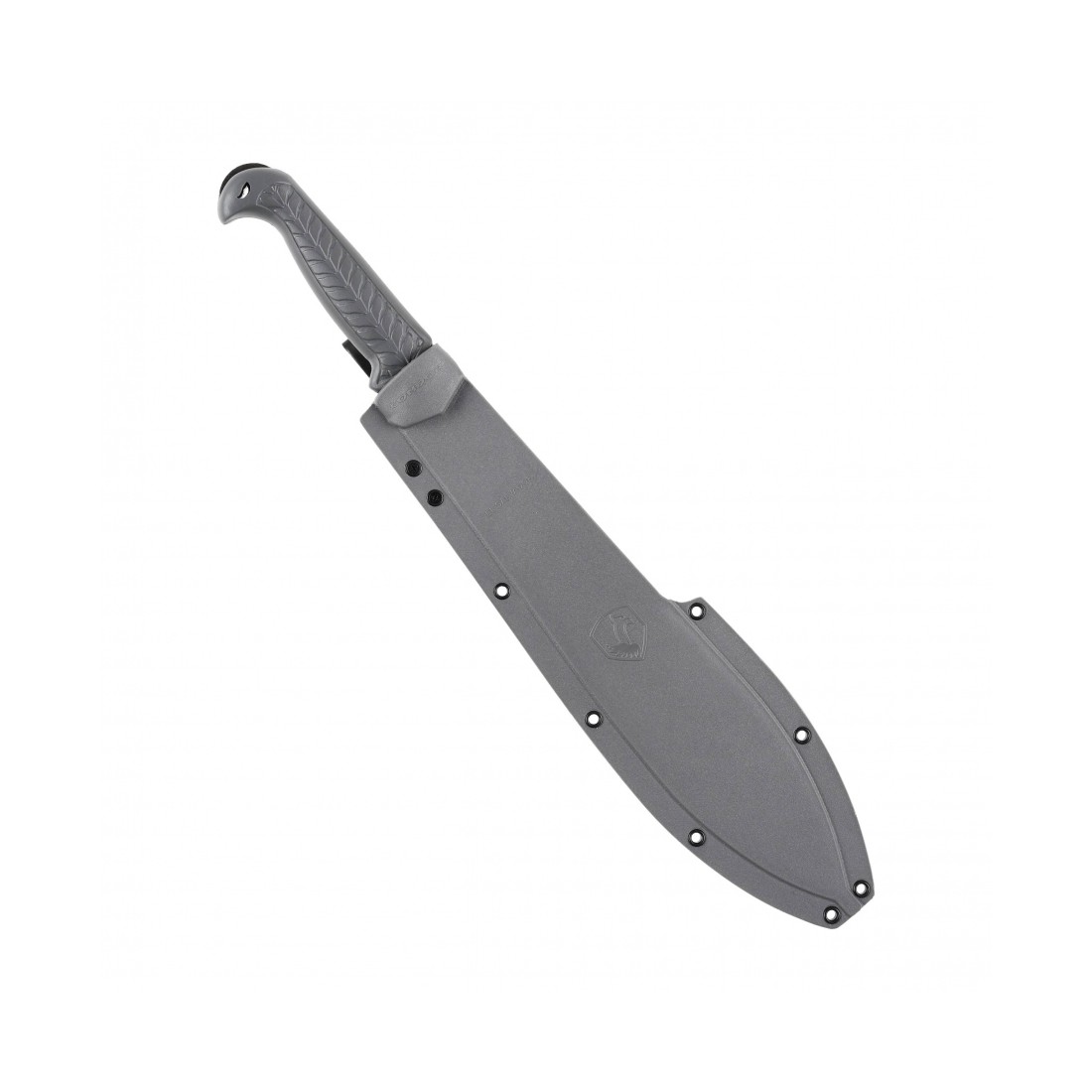 Condor Terrachete Rhino to solidna maczeta wyposażona w głownię ze stali węglowej 1075. Konstrukcja ta jest doskonale wykonanym narzędziem, będącym częścią serii bushcraft Condor. Jej kluczowym elementem jest stalowe, powlekane ostrze cechujące się trwałością oraz doskonałym trzymaniem ostrości. Maczeta bez problemu sprawdzi się w trudnych warunkach terenowych np. podczas przecinania zarośli, pnączy czy nawet małych gałęzi. Model ten będzie znakomitym towarzyszem podczas aktywności terenowych jak bushcraft czy survival. Maczeta jest wyposażona w rękojeść wykonaną z szarego, przeciwpoślizgowego tworzywa oraz elegancką głownię z wykończeniem w kolorze Rhino Grey.