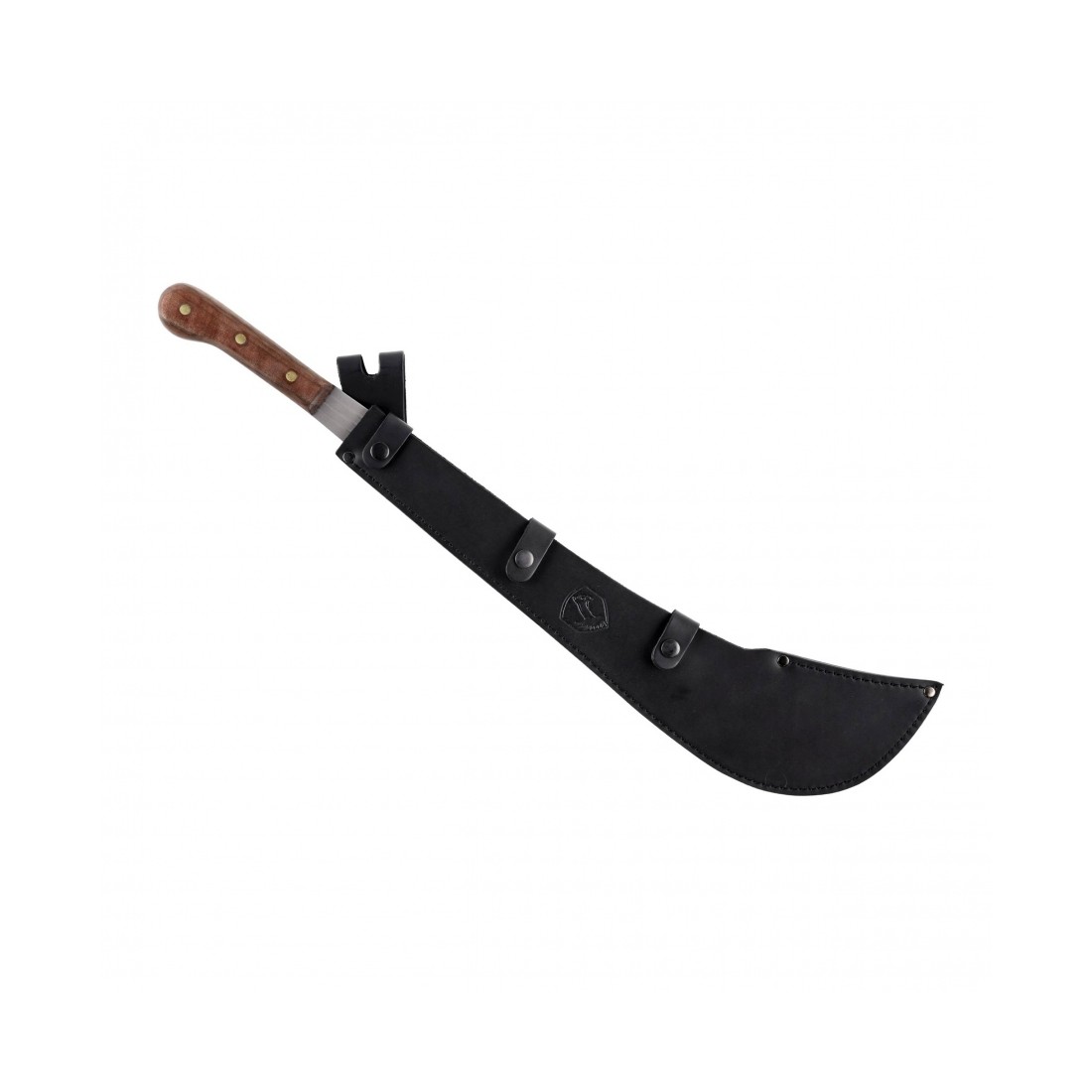 Viking to klasyczna maczeta, posiadająca skandynawski klimat. Klingę wykonano ze stali nierdzewnej 420 HC zahartowanej do 52-54 HRC i pokryto czarną powłoką Ultrablac2. Jest fabrycznie naostrzona i gotowa do pracy. Rękojeść wykonano z twardego drewna.