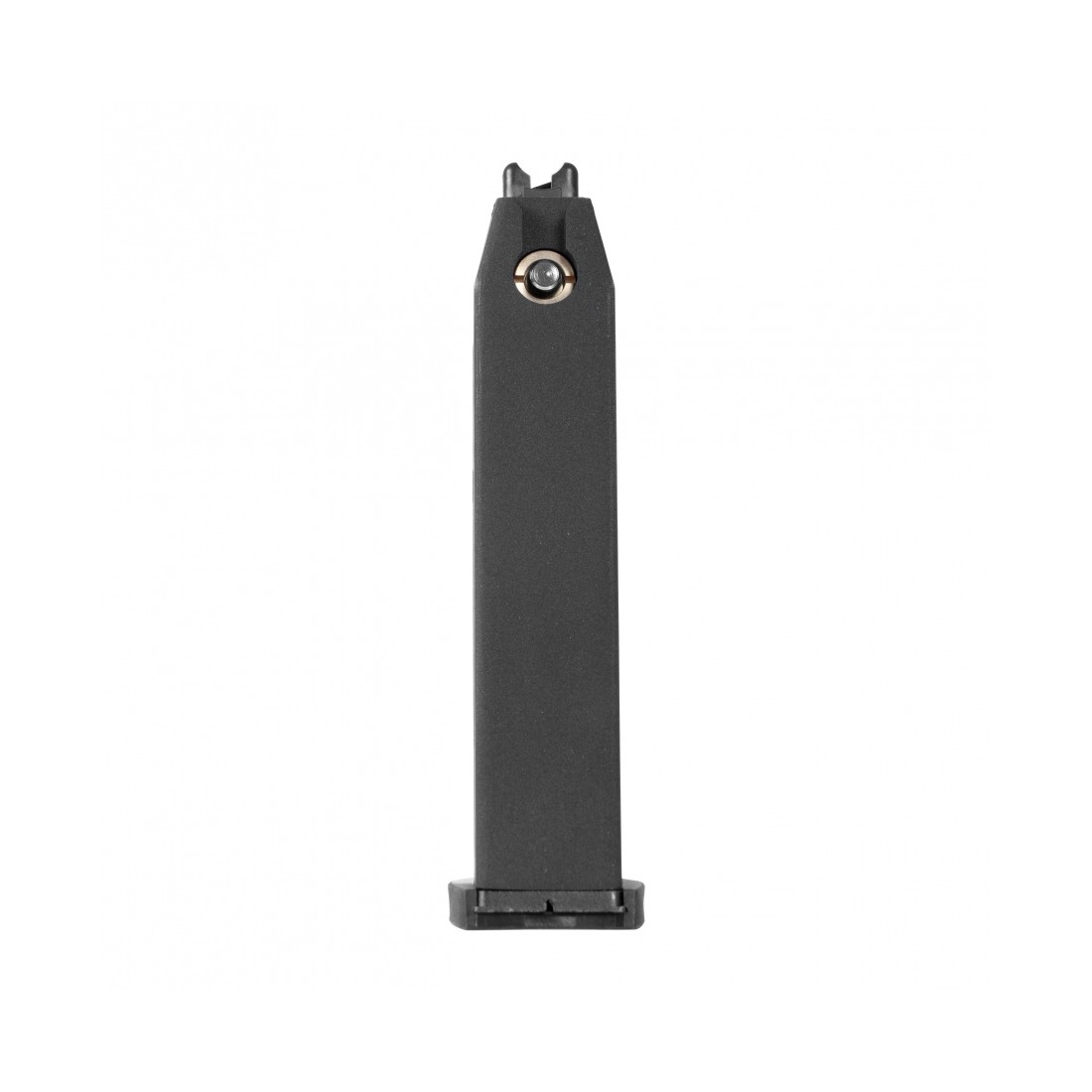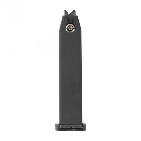 Zapasowy magazynek do repliki pistoletu Smith&Wesson M&P9 o pojemności 22 kulek 6 mm. Magazynek jest kompatybilny wyłącznie ze wspomnianą repliką. Wyposażono go w ząbkowaną krawędź donośnika, ułatwiającą jego załadowanie. Model jest wykonany z połączenia polimeru i aluminium.