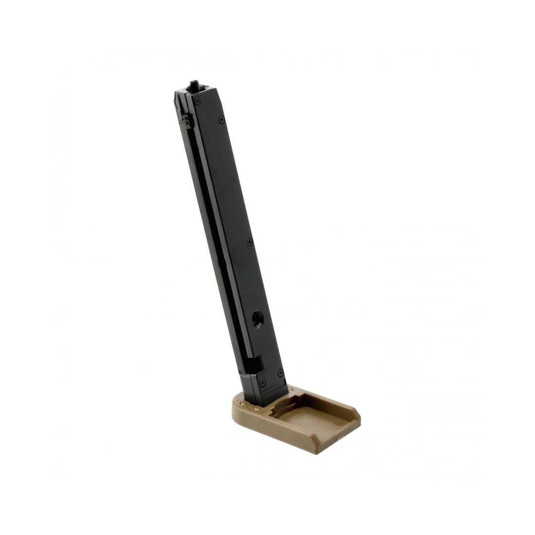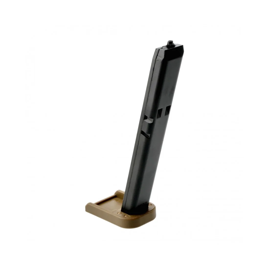 Zapasowy magazynek na 19 śrutów BB's, dedykowany do pistoletu wiatrówki Glock G19X BB 4,5 mm (bez blowback). Korpus magazynka jest metalowy, z polimeru wykonano stopkę oraz blokowany podajnik kulek. Wewnątrz magazynka mieści 19 śrutów BB's.