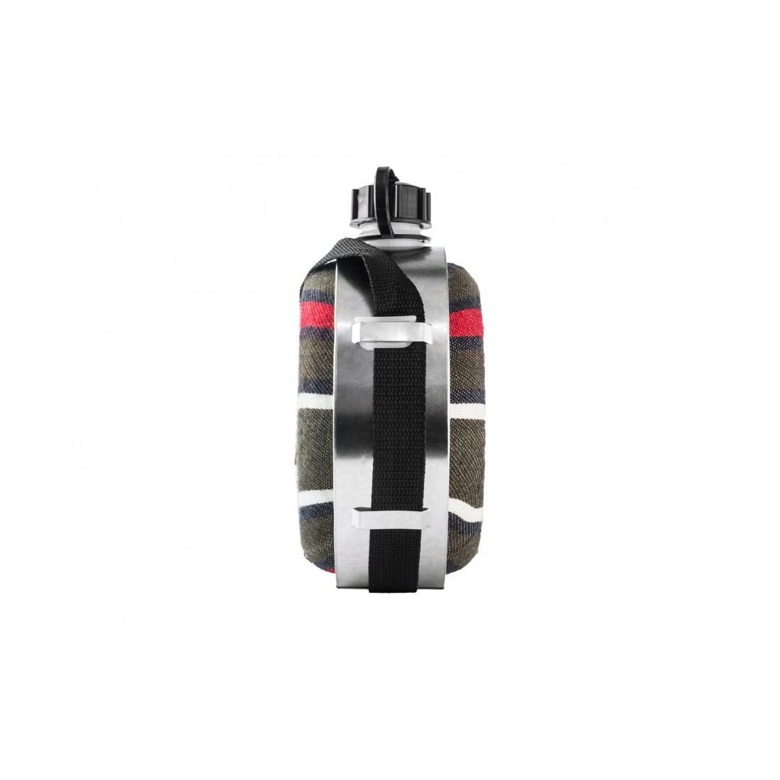 Manierka o pojemności 1,75 litra niemieckiej marki MFH. Wykonana z polimeru, na zewnątrz pokryta materiałem (pokrowiec termoizolacyjny) i opaską z aluminium. Posiada polimerową zakrętkę umocowaną tak, żeby nie było możliwości jej zgubić. Pasek o regulowanej długości umożliwia przewieszenie manierki przez ramię, bądź przytroczenie do plecaka. Manierka jest bardzo lekka. Idealna alternatywa na wyprawy survivalowe i nie tylko.