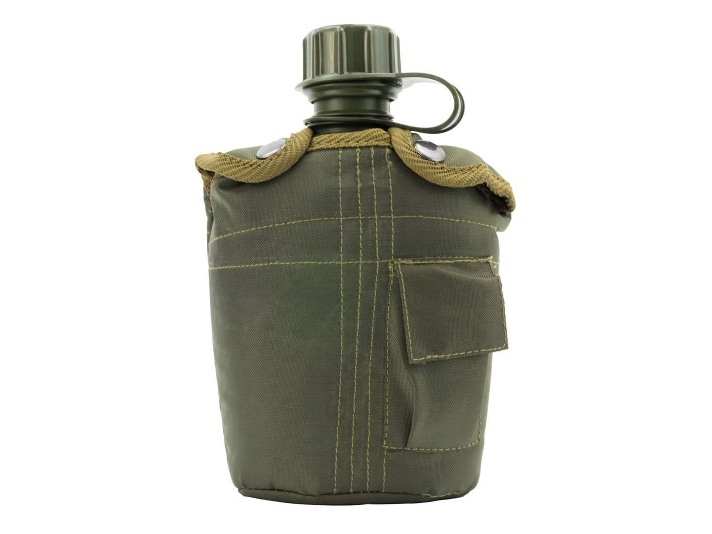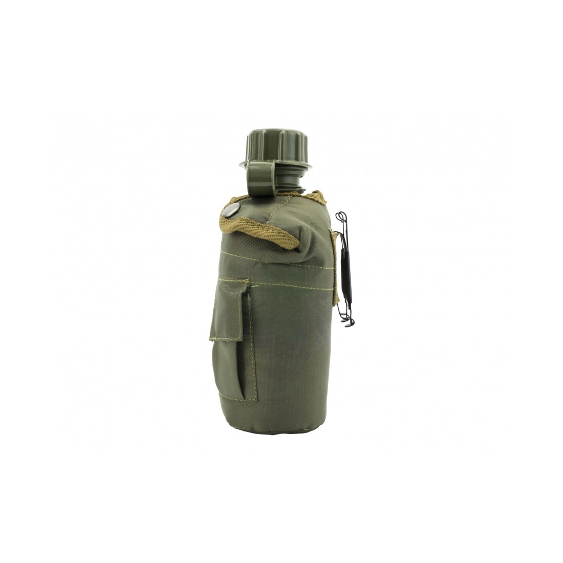 Na zewnętrznej stronie pokrowca znajduje się mała kieszeń, zaprojektowana z myślą o przechowywaniu tabletek do oczyszczania wody, krzesiwa czy innych drobnych akcesoriów. Z tyłu umieszczono klamerki montażowe, które pozwalają szybko przypiąć manierkę do pasa lub oporządzenia. Dzięki temu dostęp do wody masz zawsze pod ręką – bez konieczności zdejmowania plecaka.