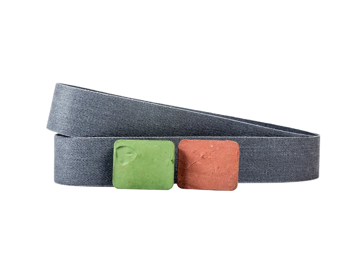 Pasy wykonano z nieścieralnej tkaniny Norton, która zapewnia bardziej stabilne i spójne podłoże do nakładania pasy polerskiej niż stosowane dotąd pasy skórzane.